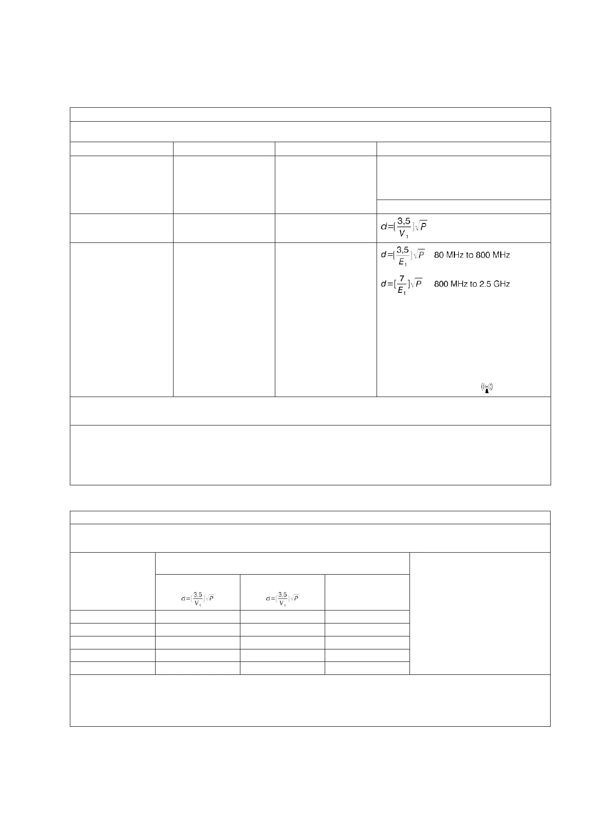 REMARK 1: At 80 MHz and 800 MHz, the separation distance for the higher frequency range applies.