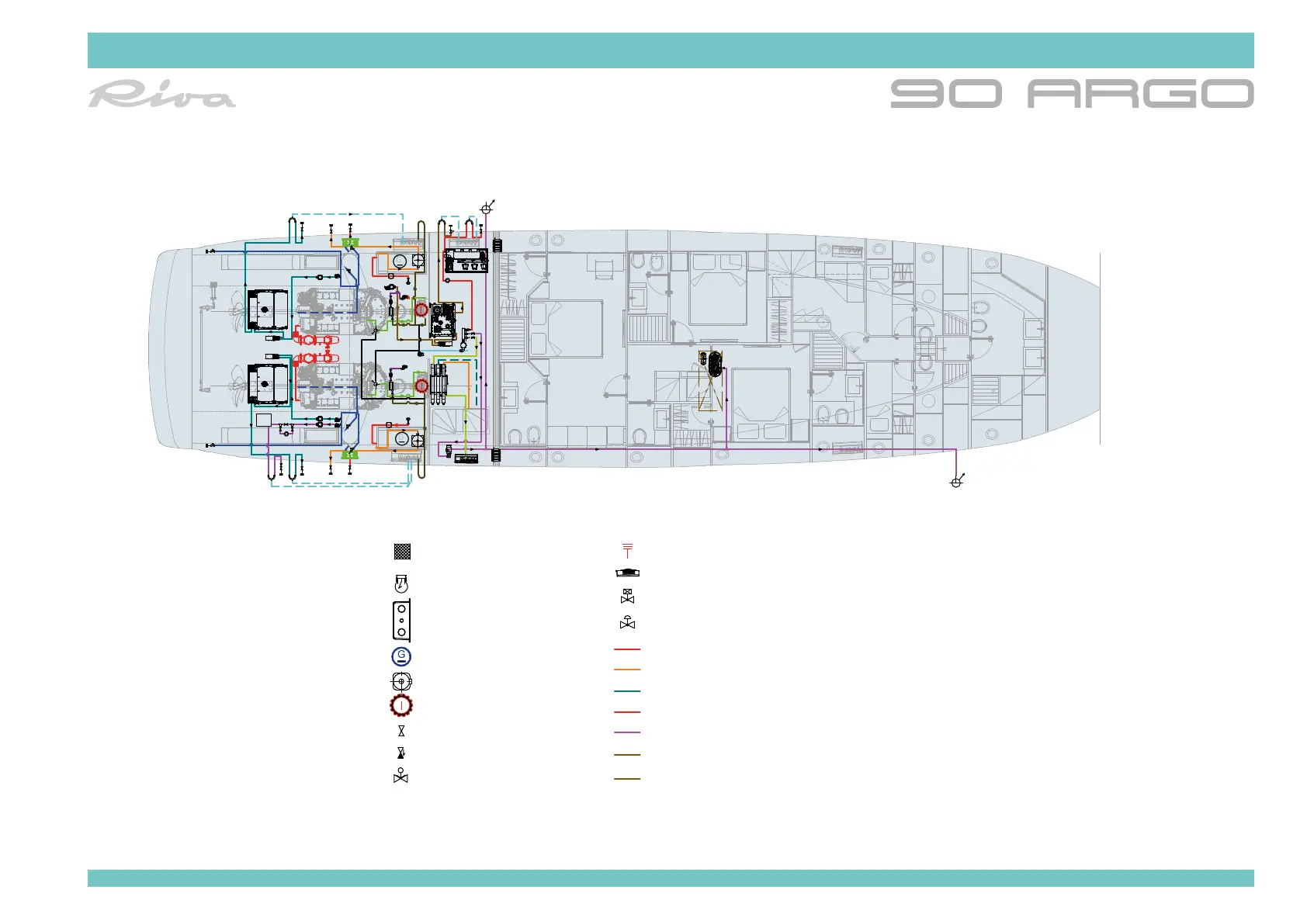 Engines cooling and sea water distribution system diagram - Lower deck