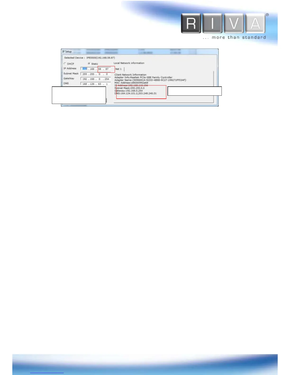 the IP Address, Subnet Mask, Gateway, and DNS boxes, except the last 2 sets of