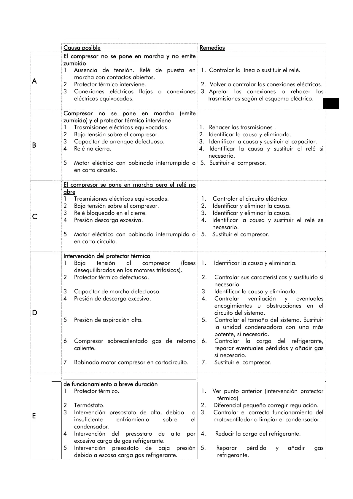 debido a escasa carga gas refrigerante.