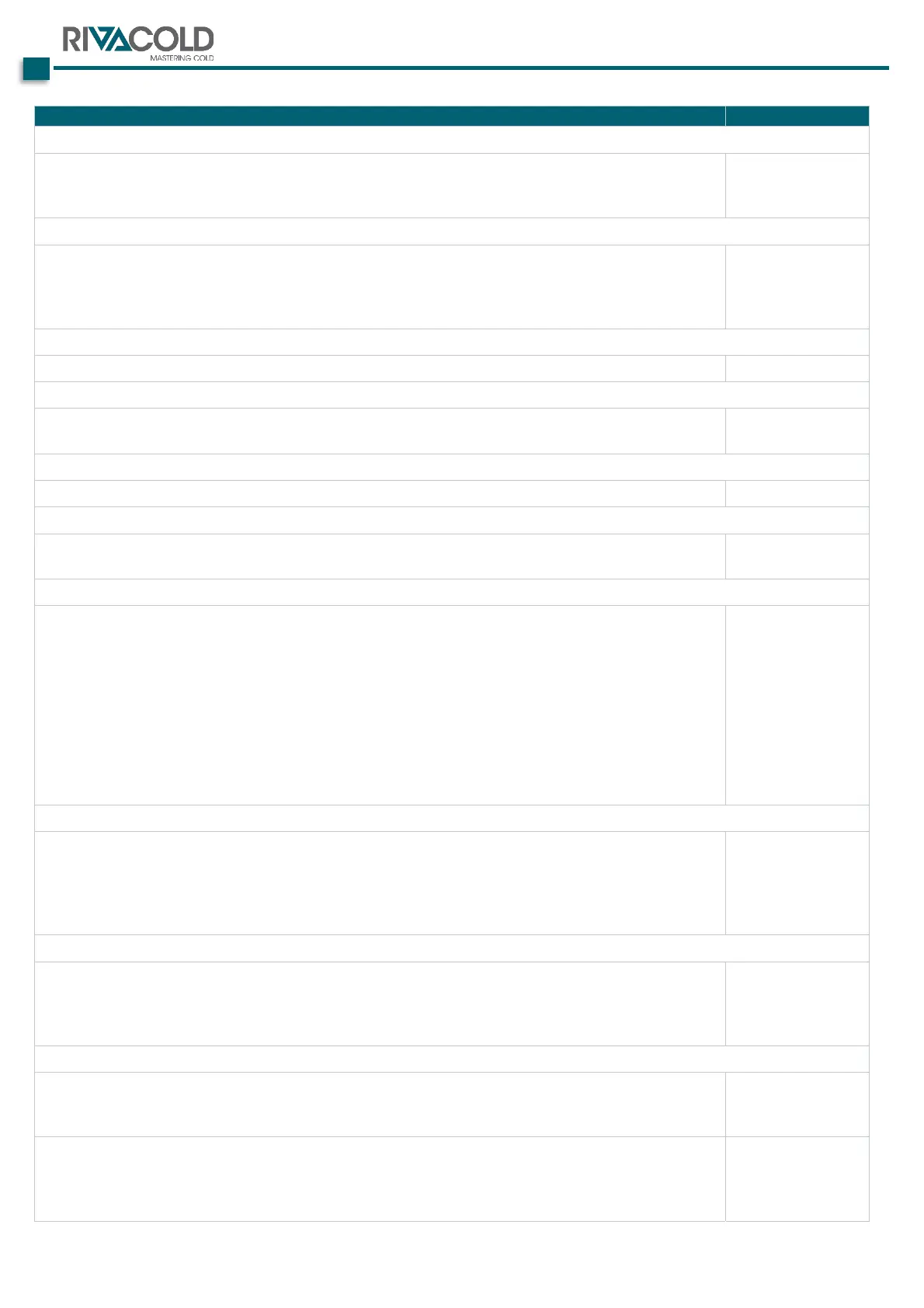 Table 6 - Maintenance frequency