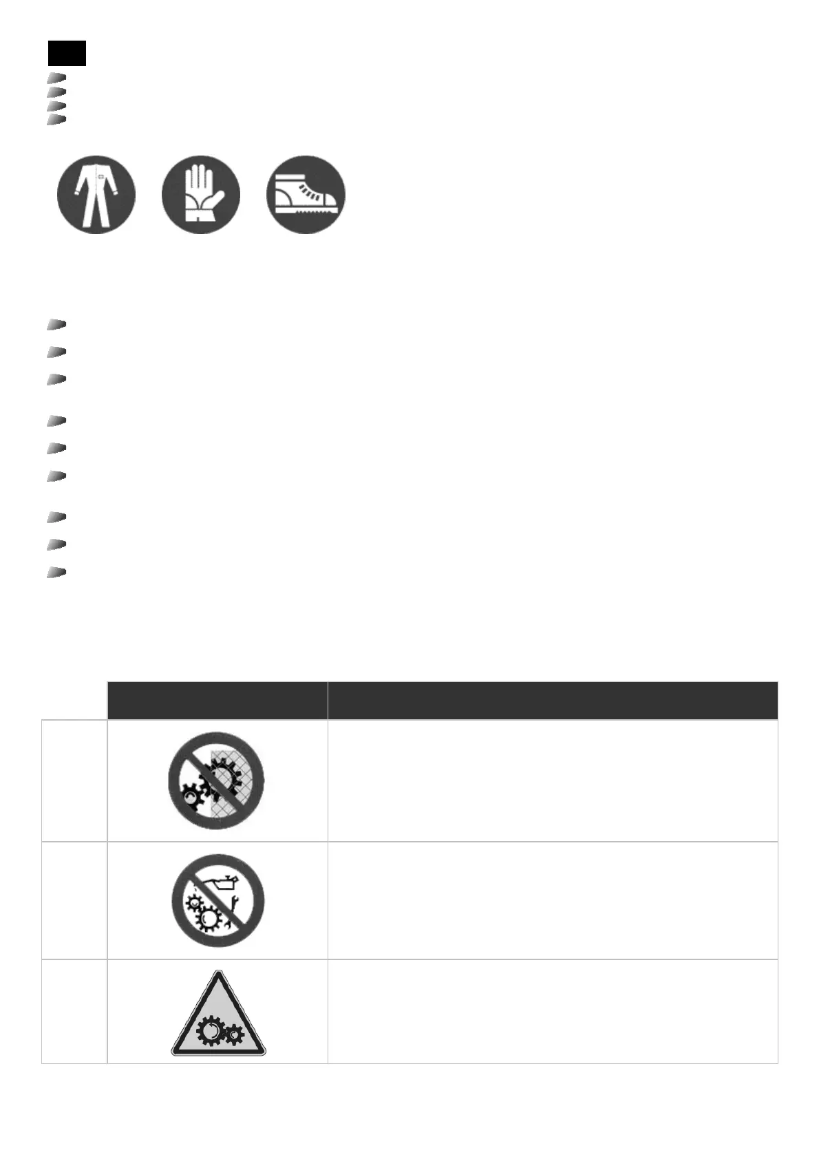 la limpieza) en correspondencia con elementos en movimiento; por lo general