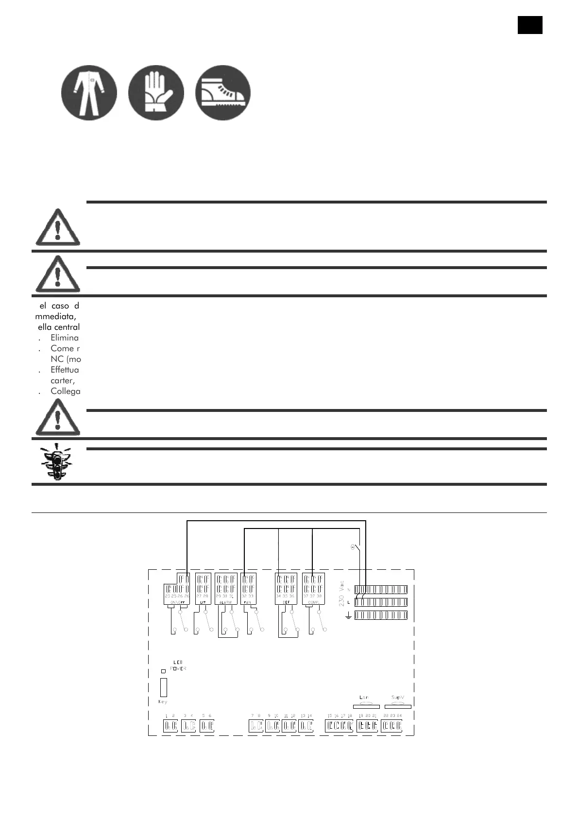 1. Eliminare tutti i ponti presenti tra i morsetti L ed i comuni dei relè della scheda (morsetti 25-28- 33-36-38);