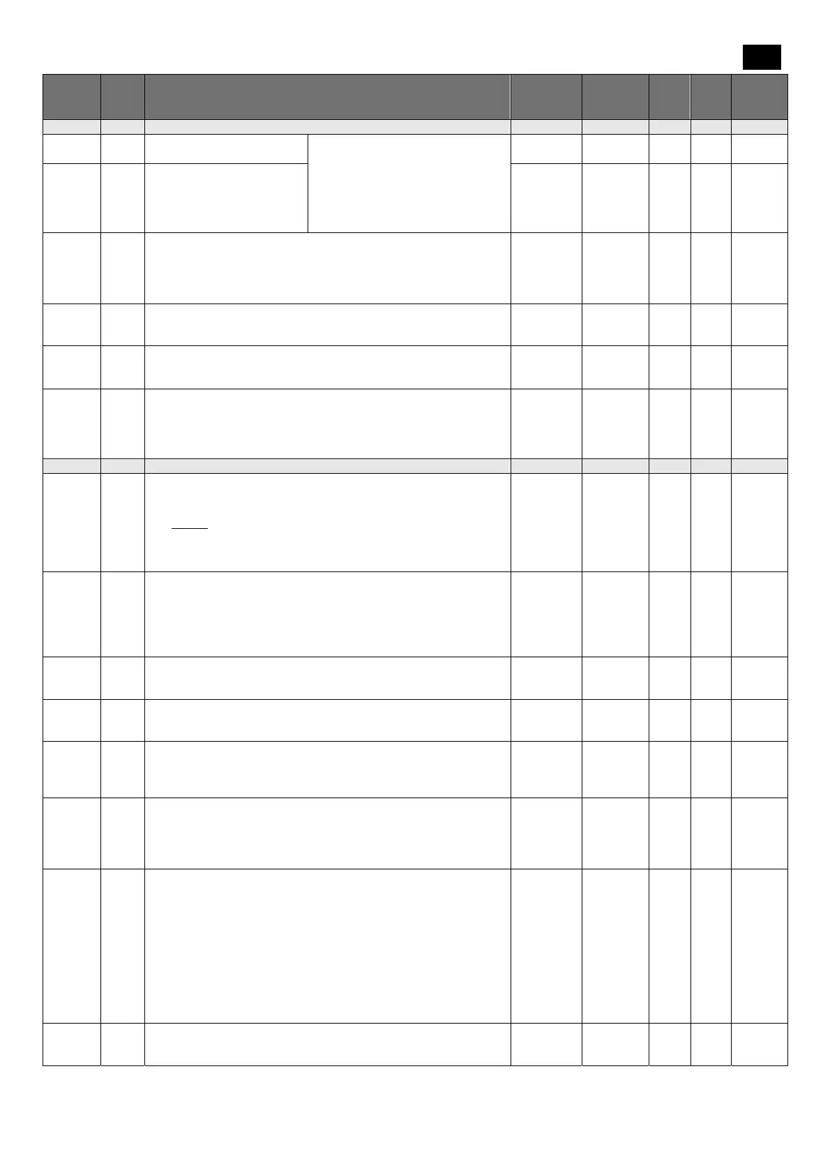 List of -dEF defrosting parameters