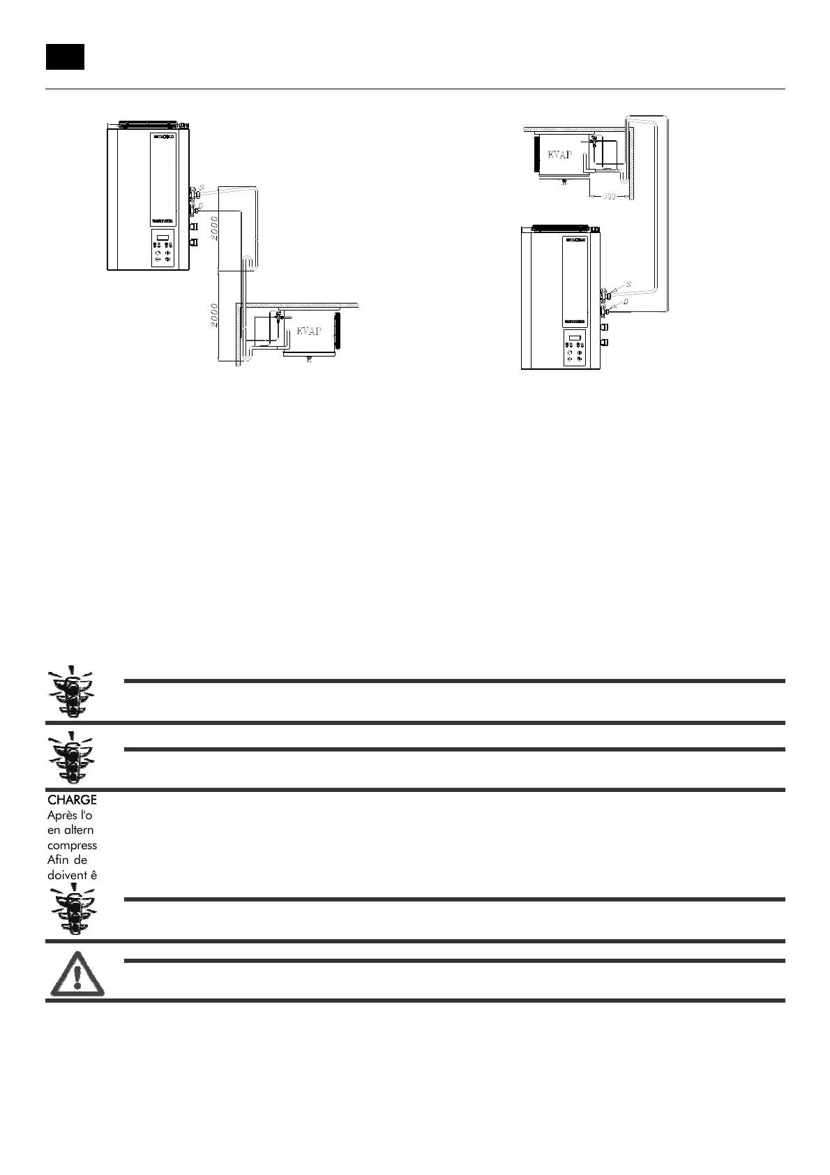 montrée dans la Figure 5 avec le condenseur positionné au-dessus de l'évaporateur, il est important de prévoir des siphons sur la