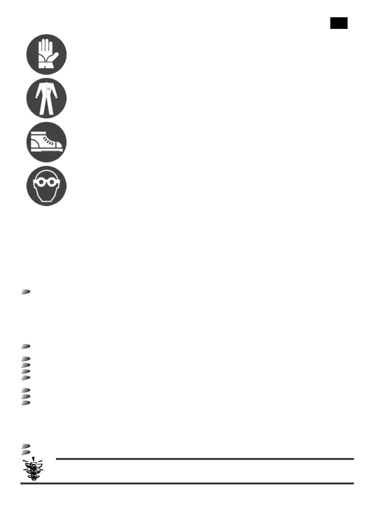 Indica la necesidad de utilizar ropa de protección adecuada para efectuar la operación descrita.
