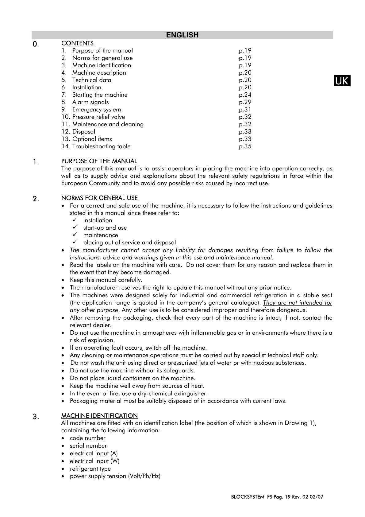 BLOCKSYSTEM FS Pag. 19 Rev. 02 02/07