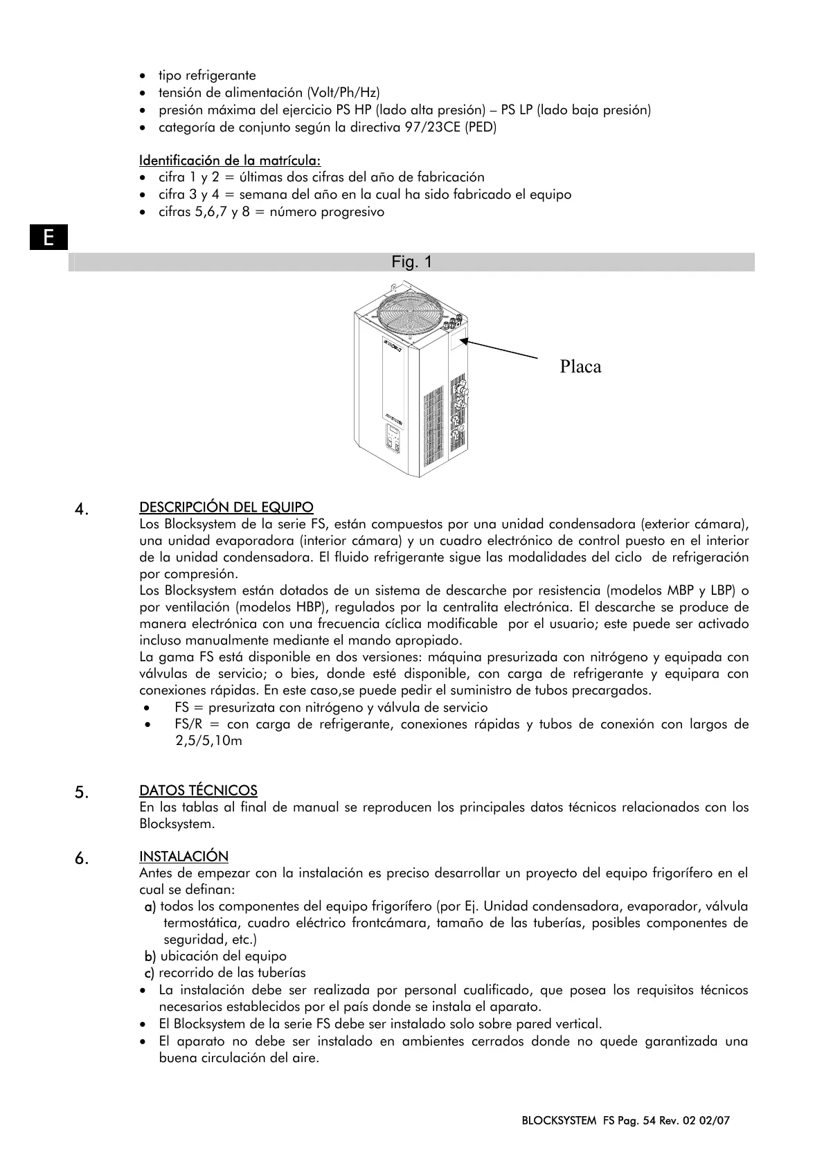 BLOCKSYSTEM FS Pag. 54 Rev. 02 02/07