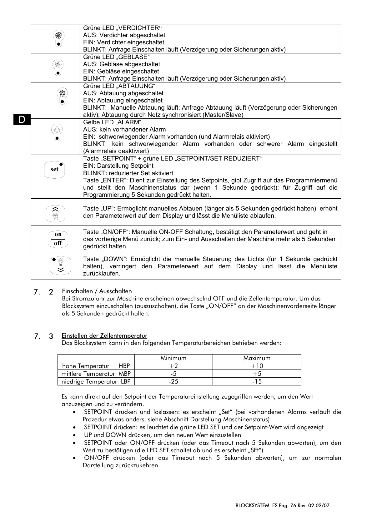 Das Blocksystem kann in den folgenden Temperaturbereichen betrieben werden: