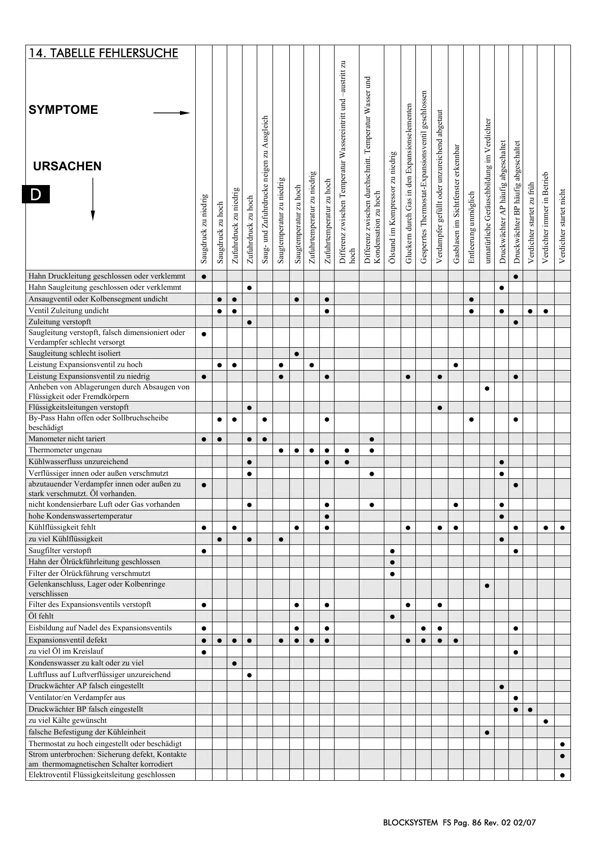14. TABELLE FEHLERSUCHE