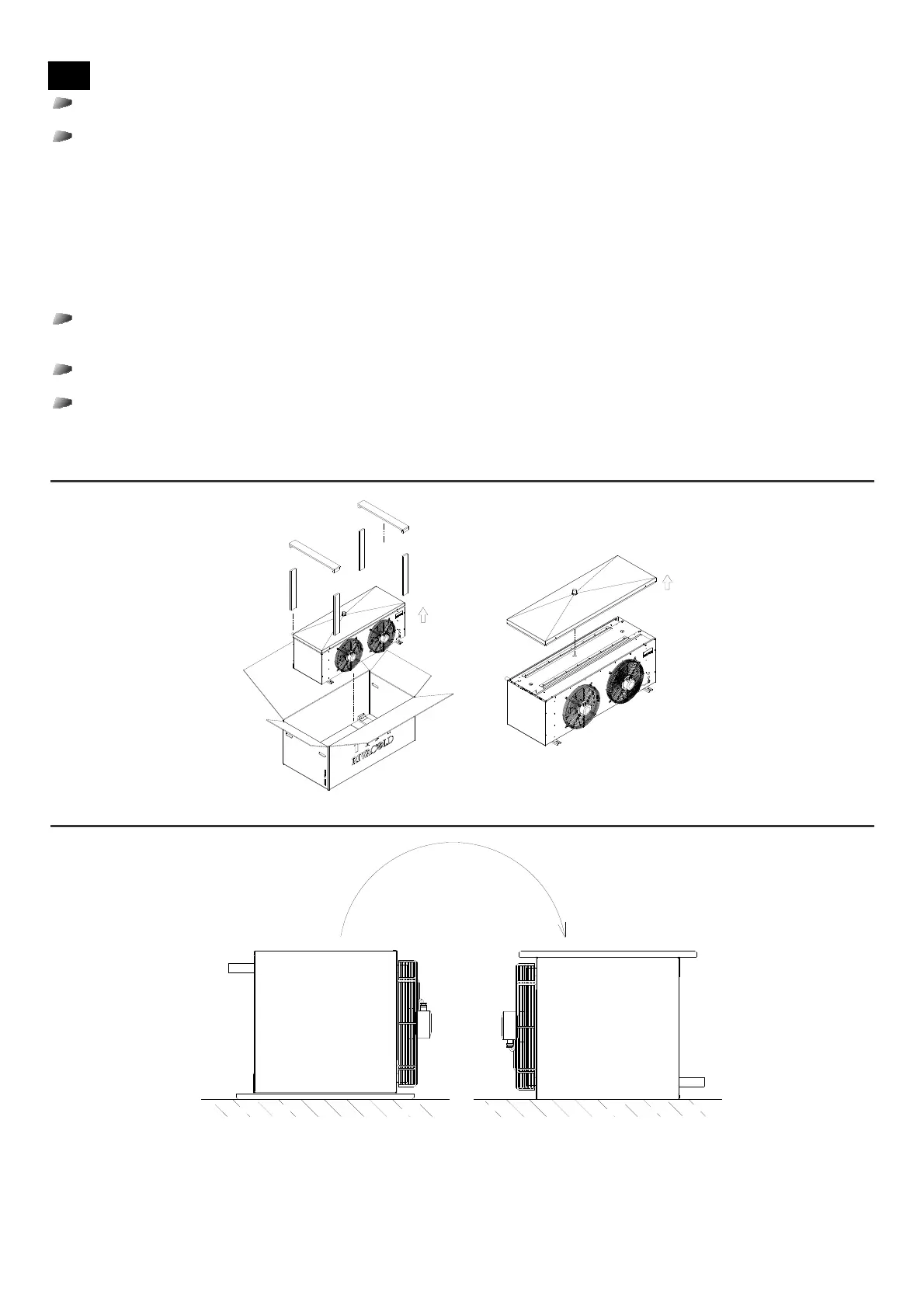 Turn the air-cooled evaporator by 180°, avoiding to damage the collector, the fan motors, and (if not previously disassembled)