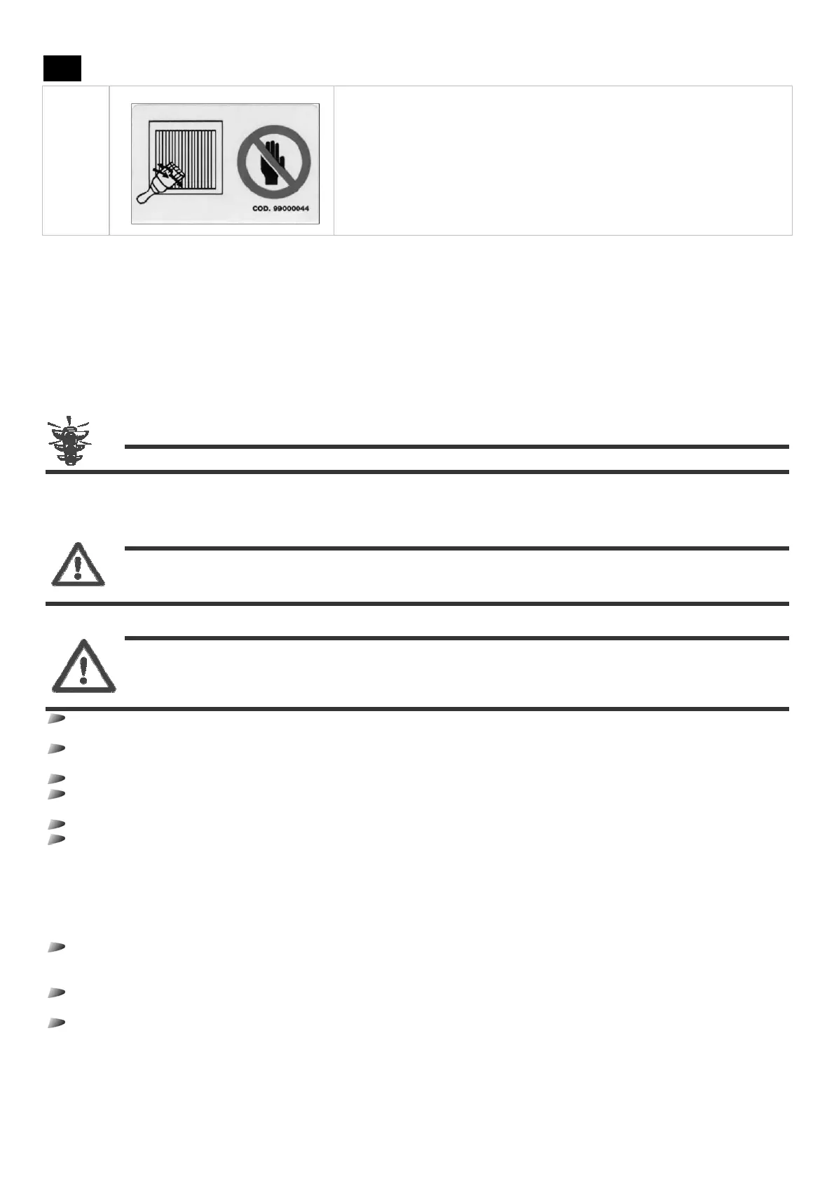 DANGER: the Manufacturer rejects any responsibility for possible damages to things and/or persons