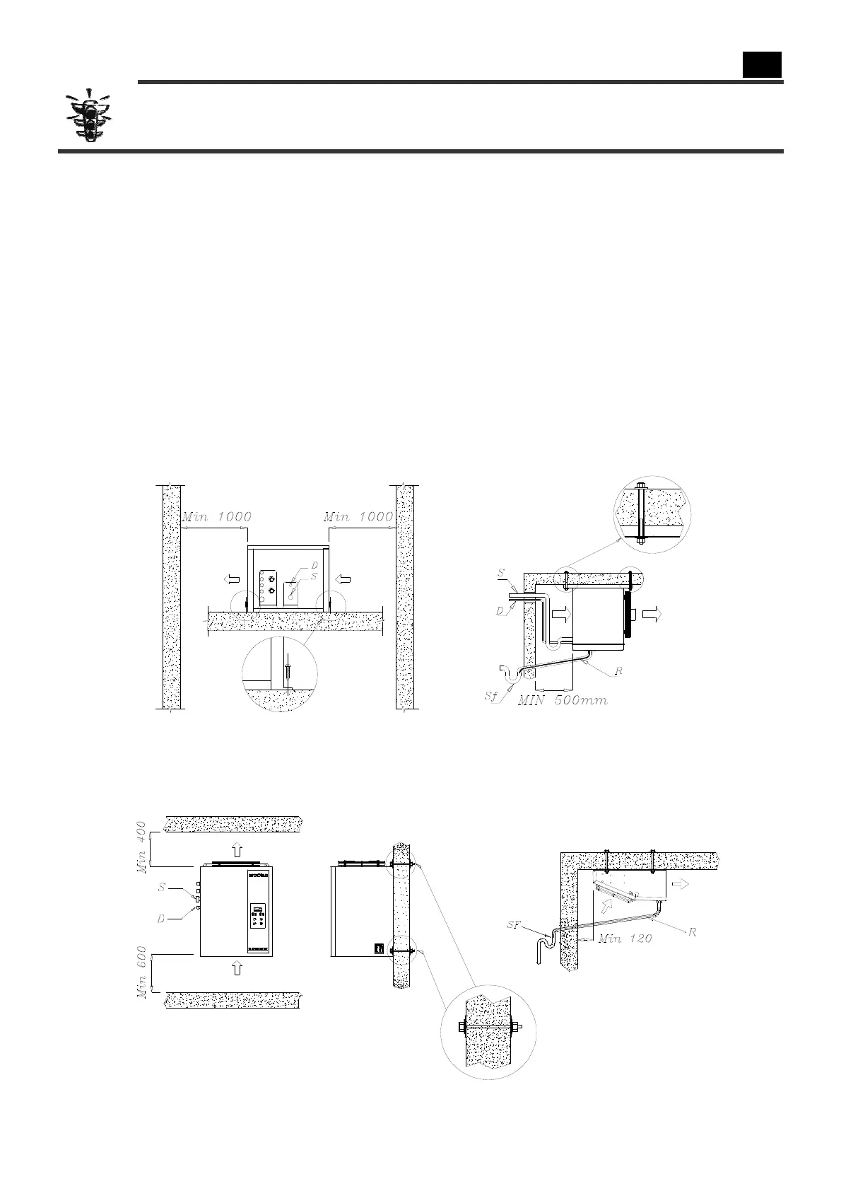 Para los Blocksystem SP, fijar la parte condensadora en la pared vertical con 4 tornillos según indicado en la Figura 4,