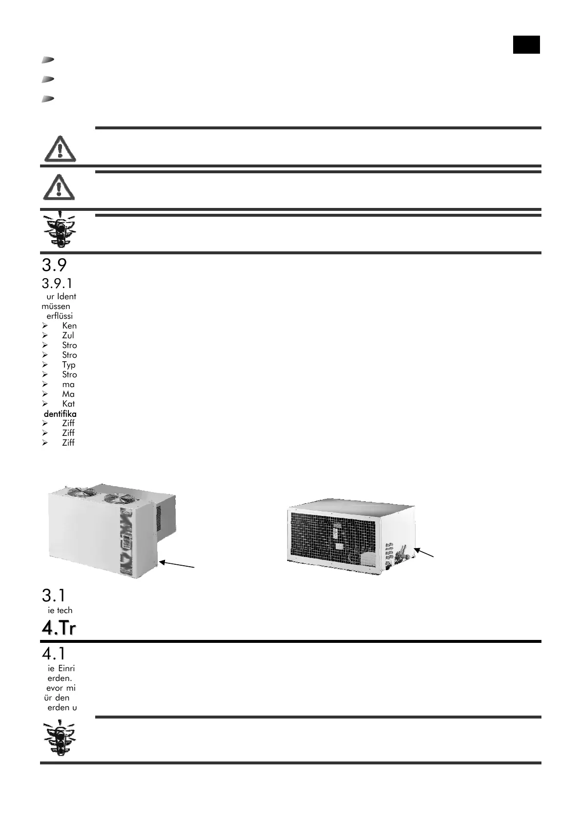 GEFAHR: Vor Beginn eines jeglichen Eingriffes auf der Maschine oder in der Nähe ihrer Teile oder Zusatzgeräte,