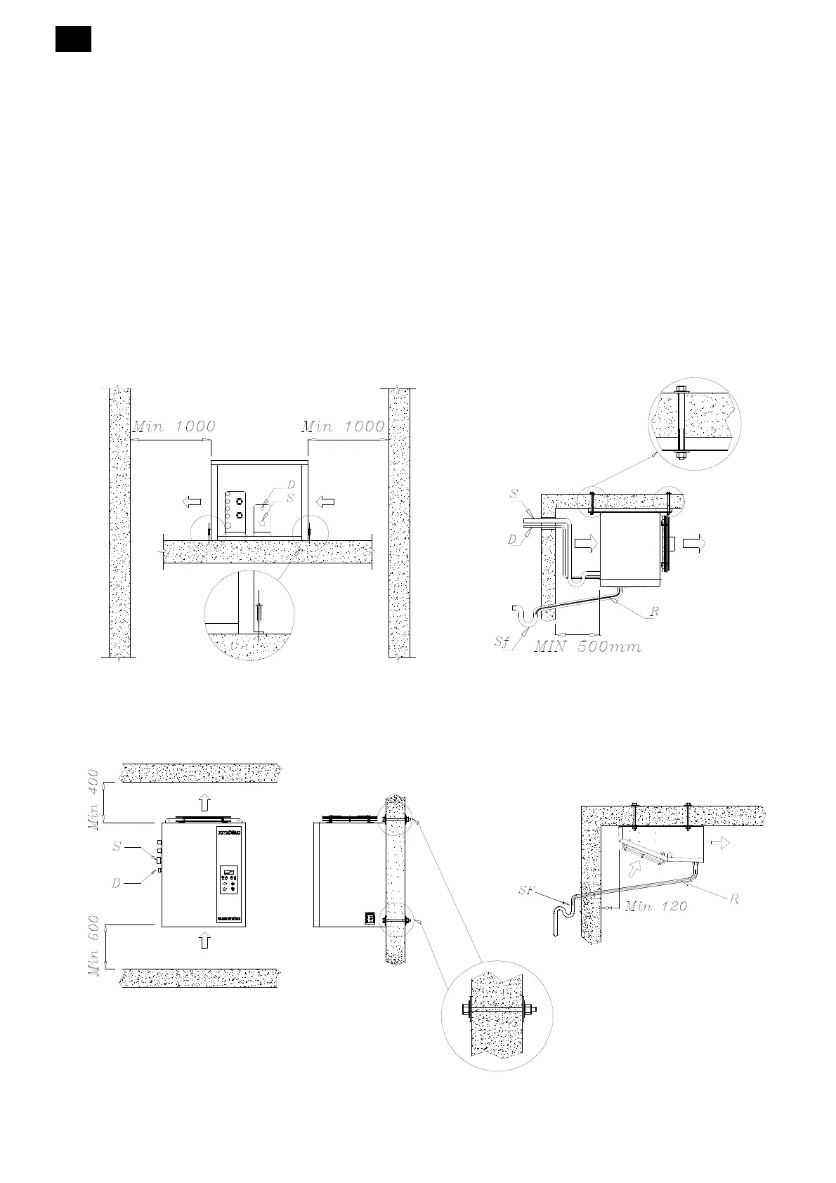 2. Per i Blockystem ST, fissare la parte condensante sul pavimento o sul soffitto con n°4 viti come indicato in Figura 3. Per i