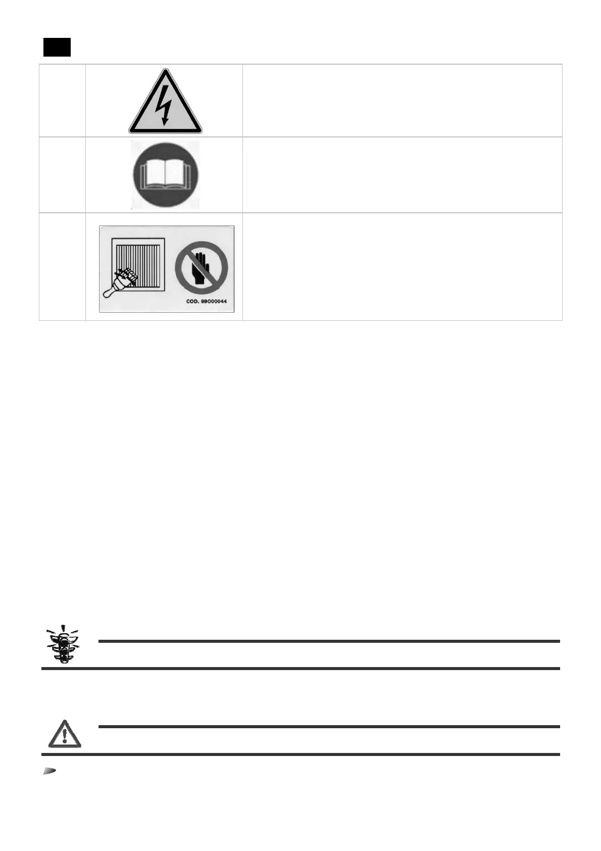 To avoid any risky conditions to people or damage to the machine, we recommend you scrupulously follow the general warnings