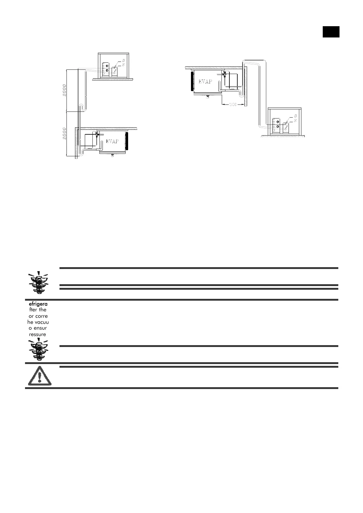 unit located above the evaporator, it is important to provide siphons on the suction line every 2 m in height difference to ensure
