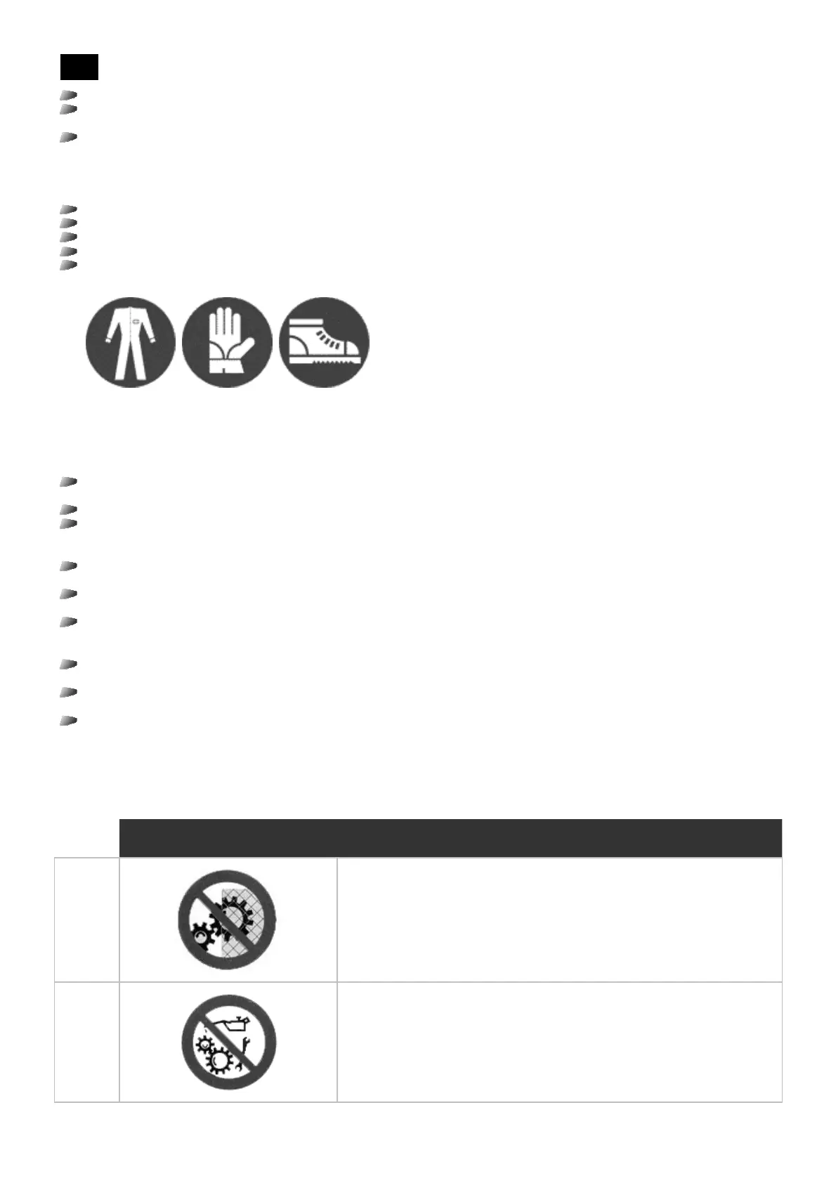 opérations sur la machinede la part d'un personnel non qualifié, non formé, non informé ou non correctement équipé.