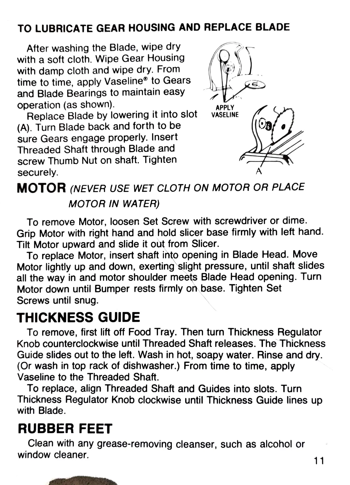 Rival 1101E - Lubricate and Replace Blade; Servicing Motor, Guide, and Feet