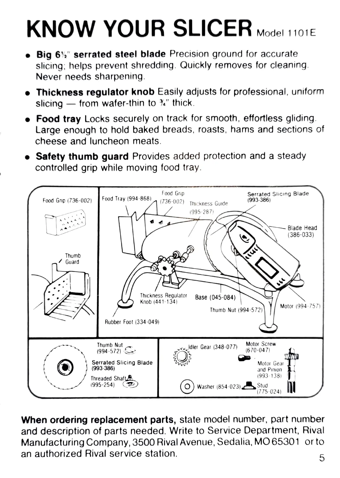 Rival 1101E - Getting to Know Your Slicer; Model 1101 E Features