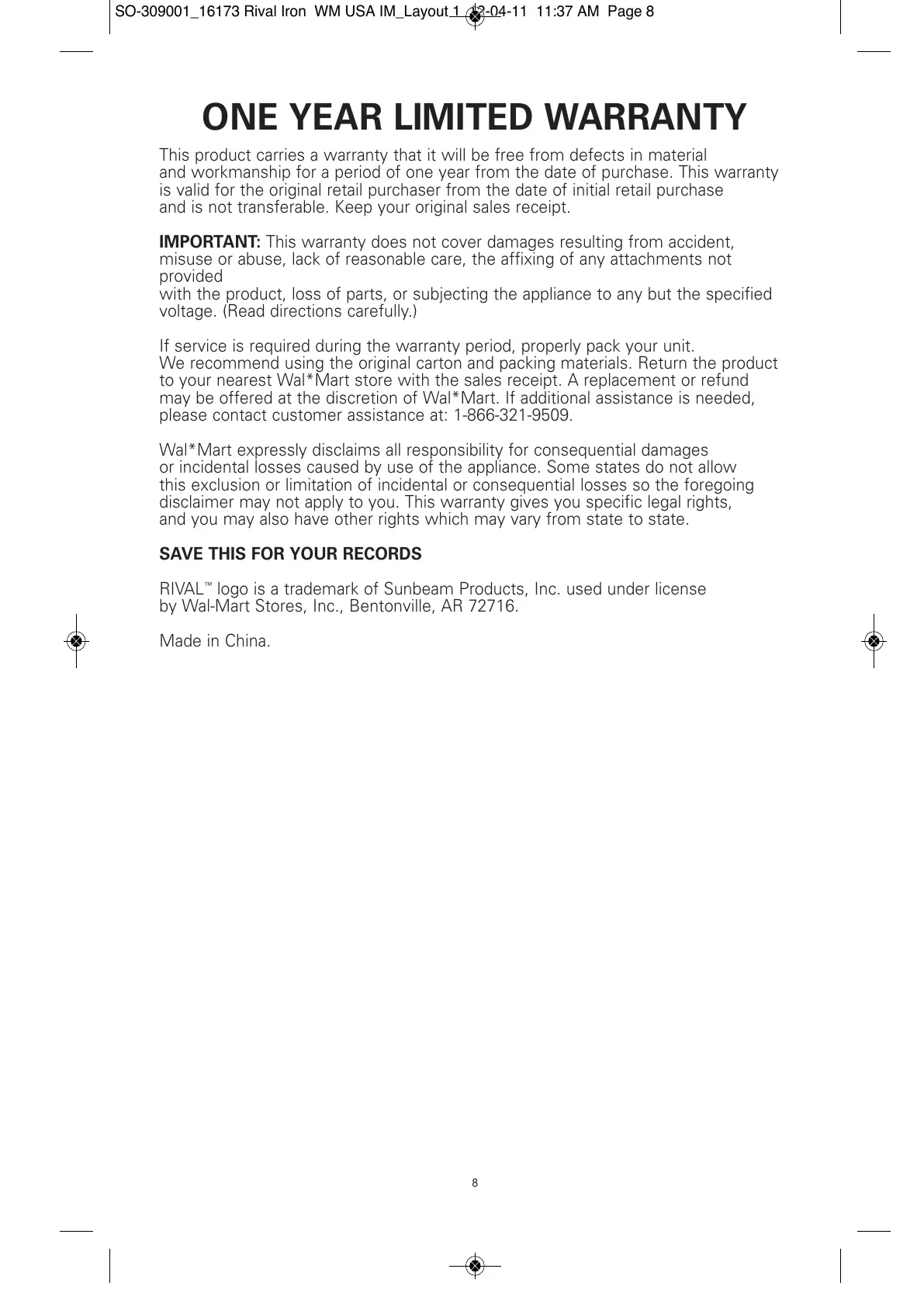 Wal*Mart expressly disclaims all responsibility for consequential damages