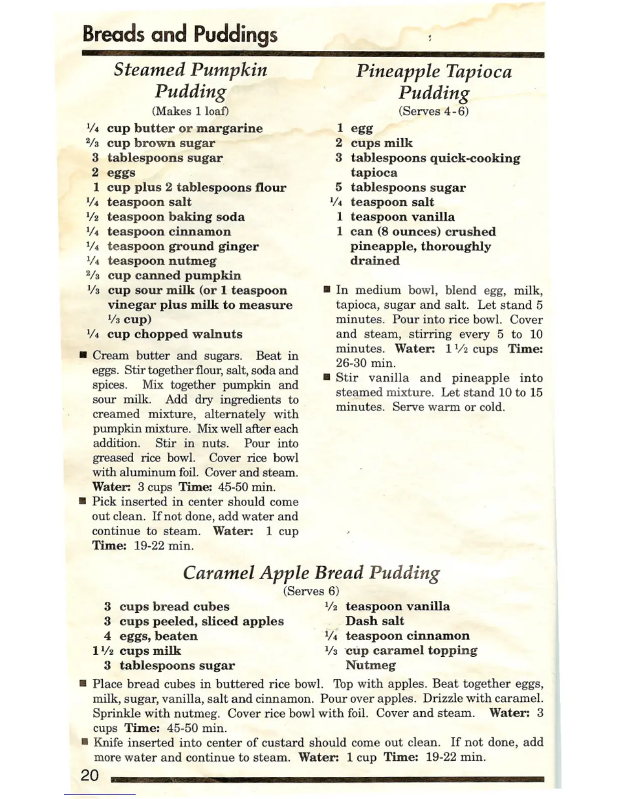 morewater and continue to steam. Water: 1 cup Time: 19-22 min.