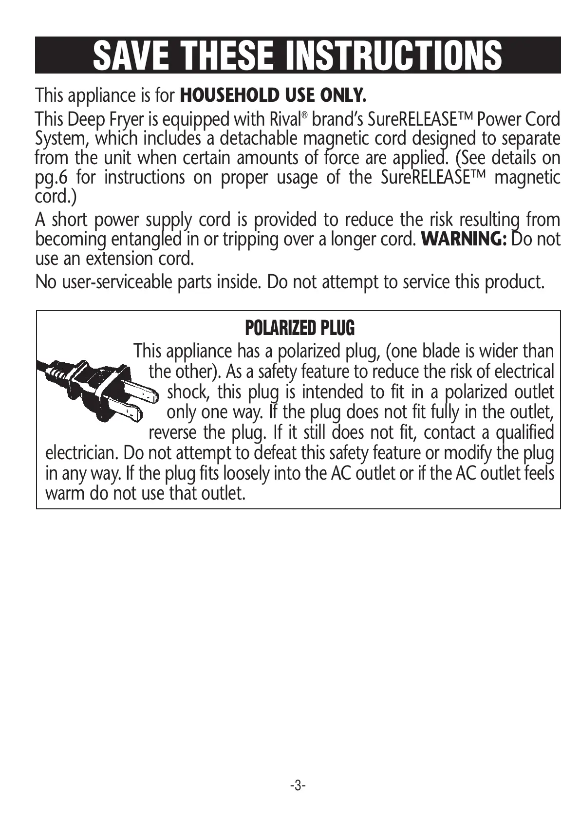 electrician. Do not attempt to defeat this safety feature or modify the plug