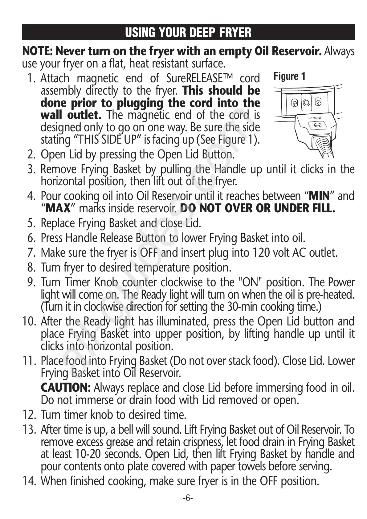 CAUTION: Always replace and close Lid before immersing food in oil.