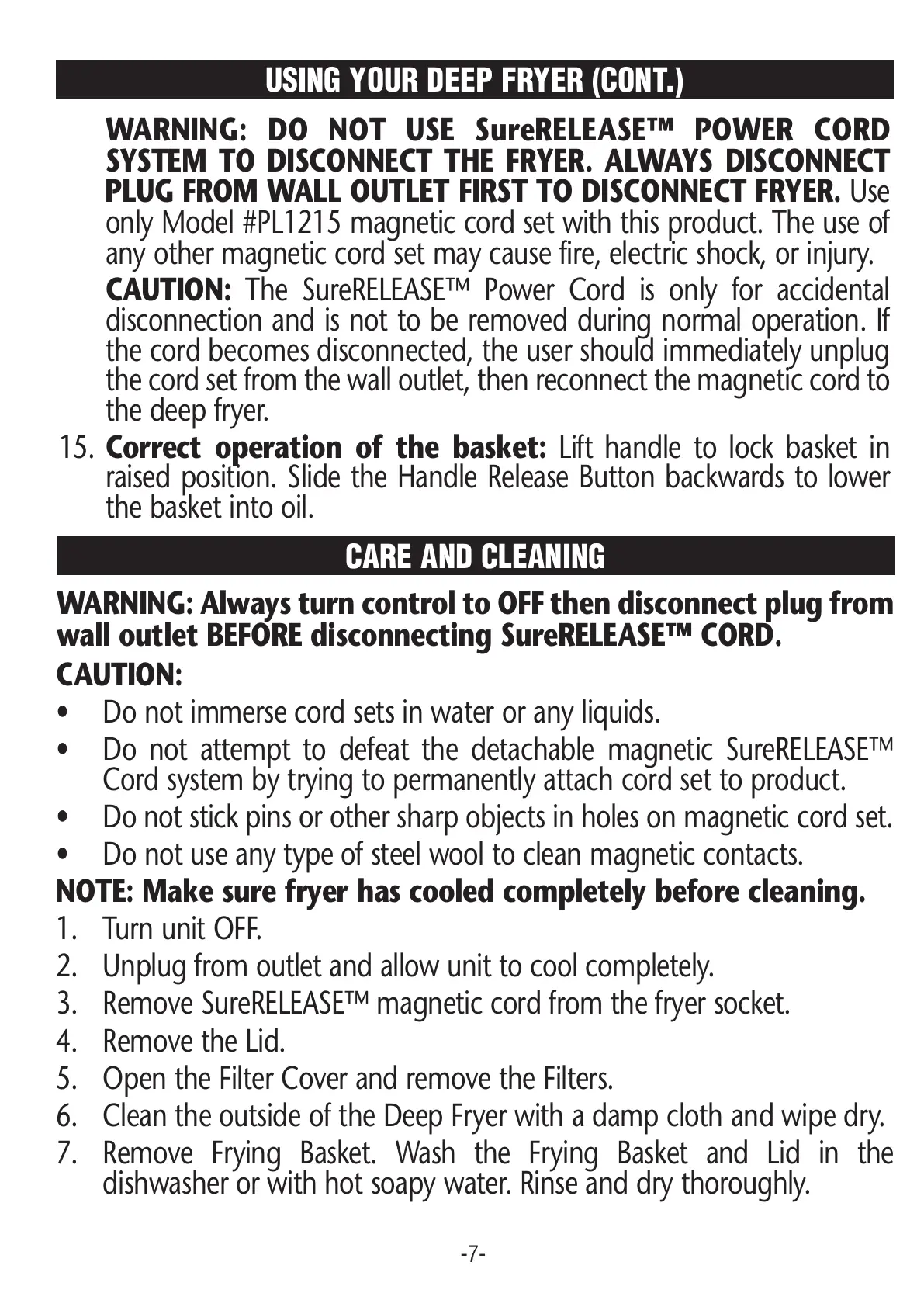 NOTE: Make sure fryer has cooled completely before cleaning.