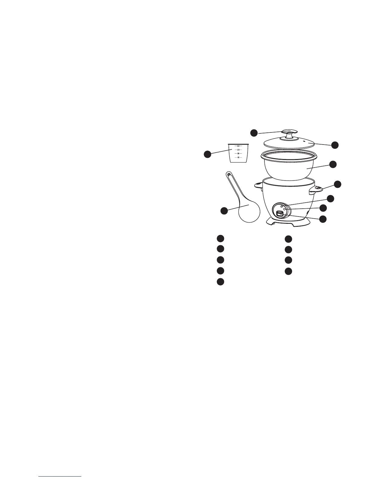 • Do not leave the RICE LADLE or MEASURING CUP in the INNER POT while