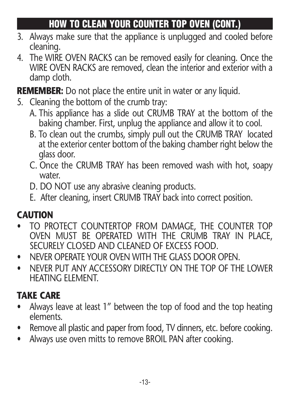 HOW TO CLEAN YOUR COUNTER TOP OVEN (CONT.)