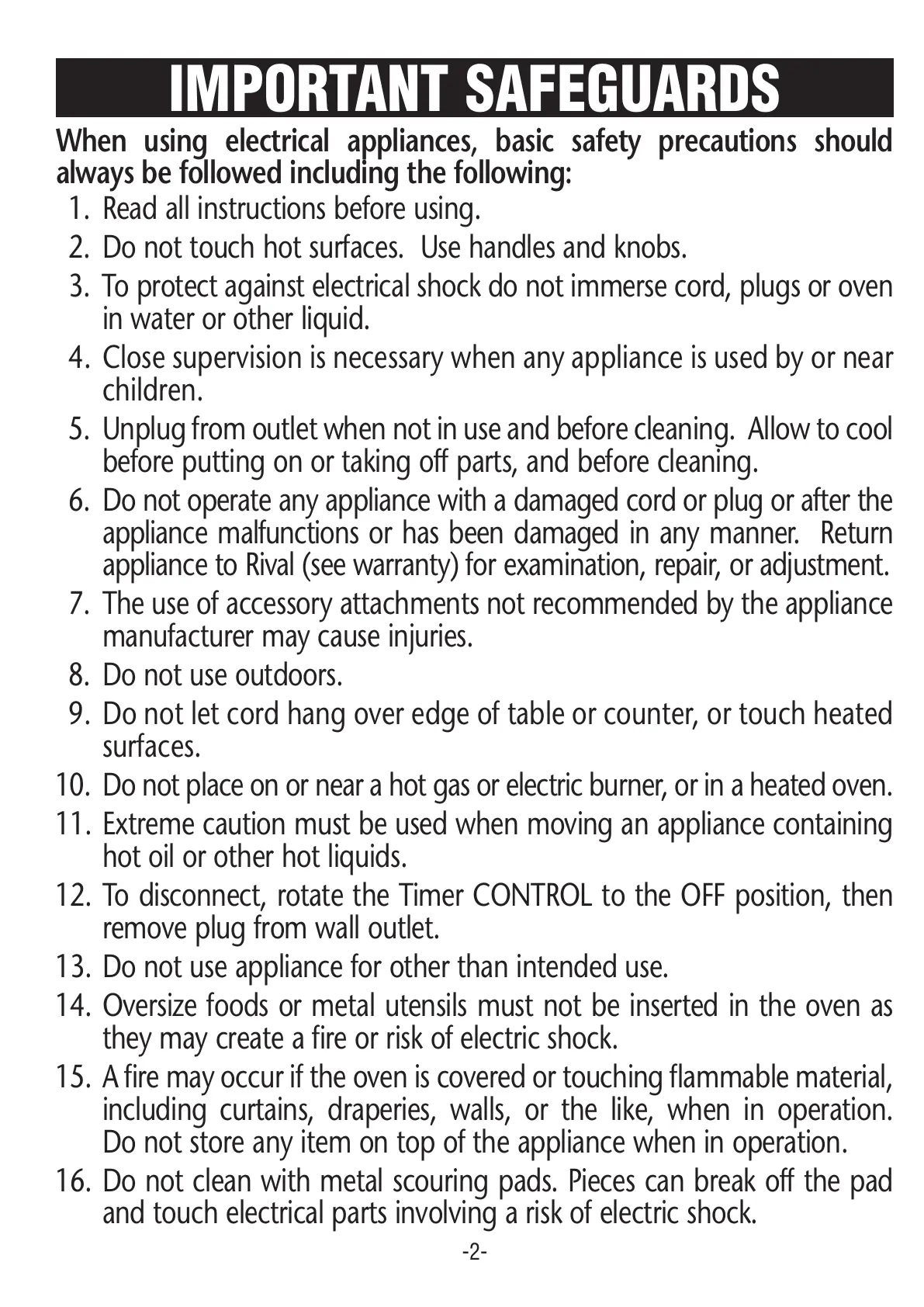 appliance to Rival (see warranty) for examination, repair, or adjustment.