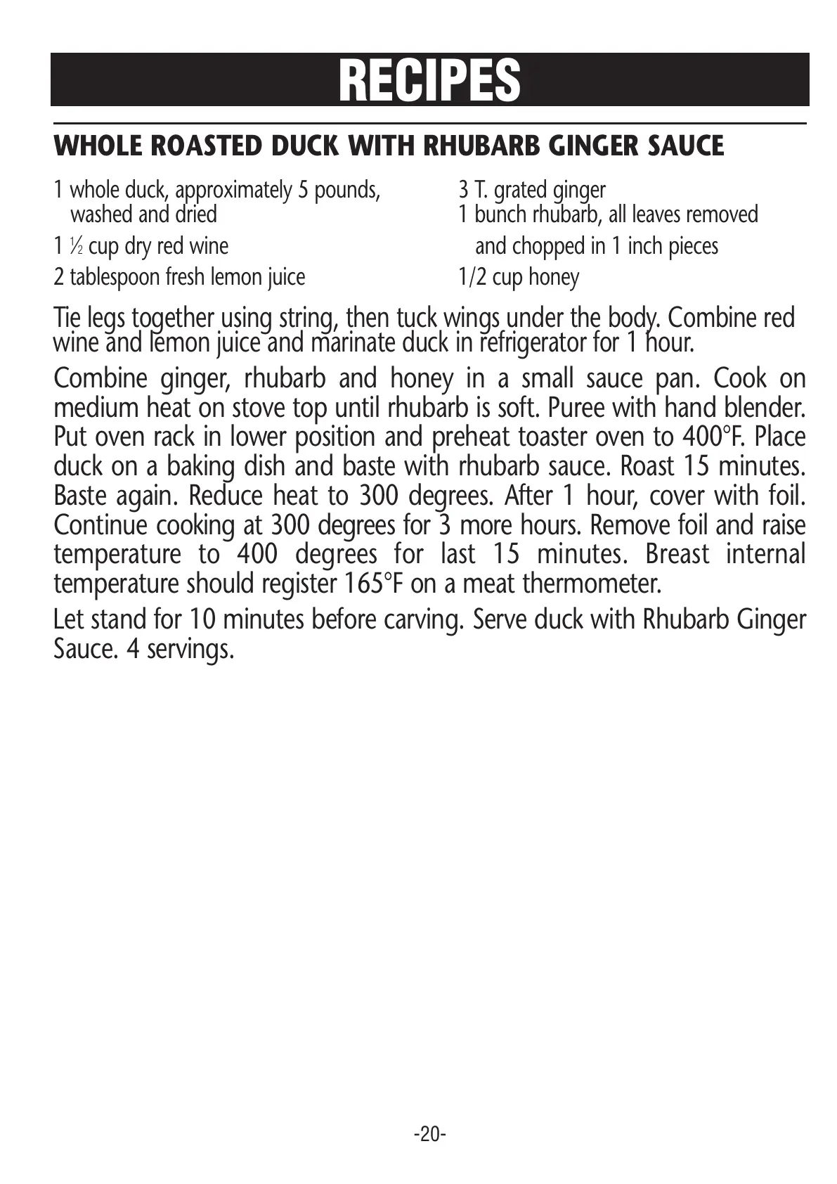 Let stand for 10 minutes before carving. Serve duck with Rhubarb Ginger