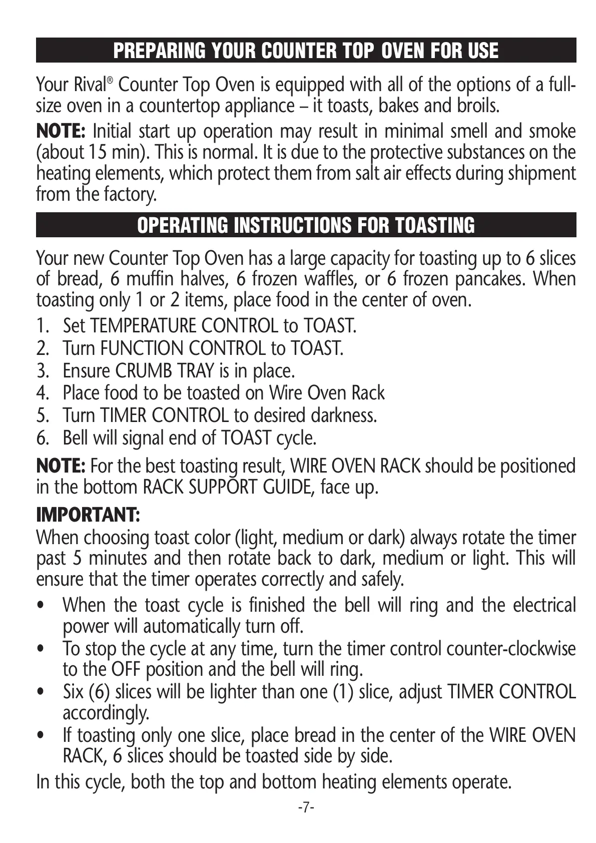Your new Counter Top Oven has a large capacity for toasting up to 6 slices