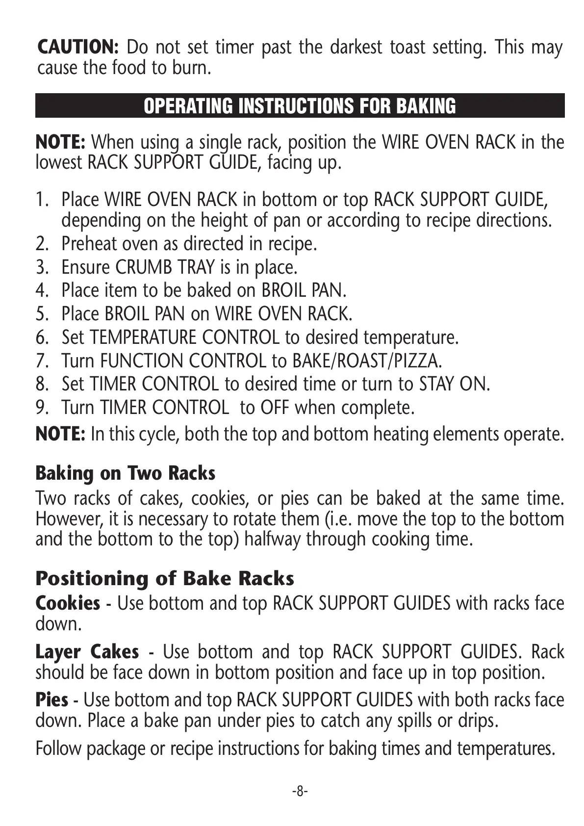 Two racks of cakes, cookies, or pies can be baked at the same time.