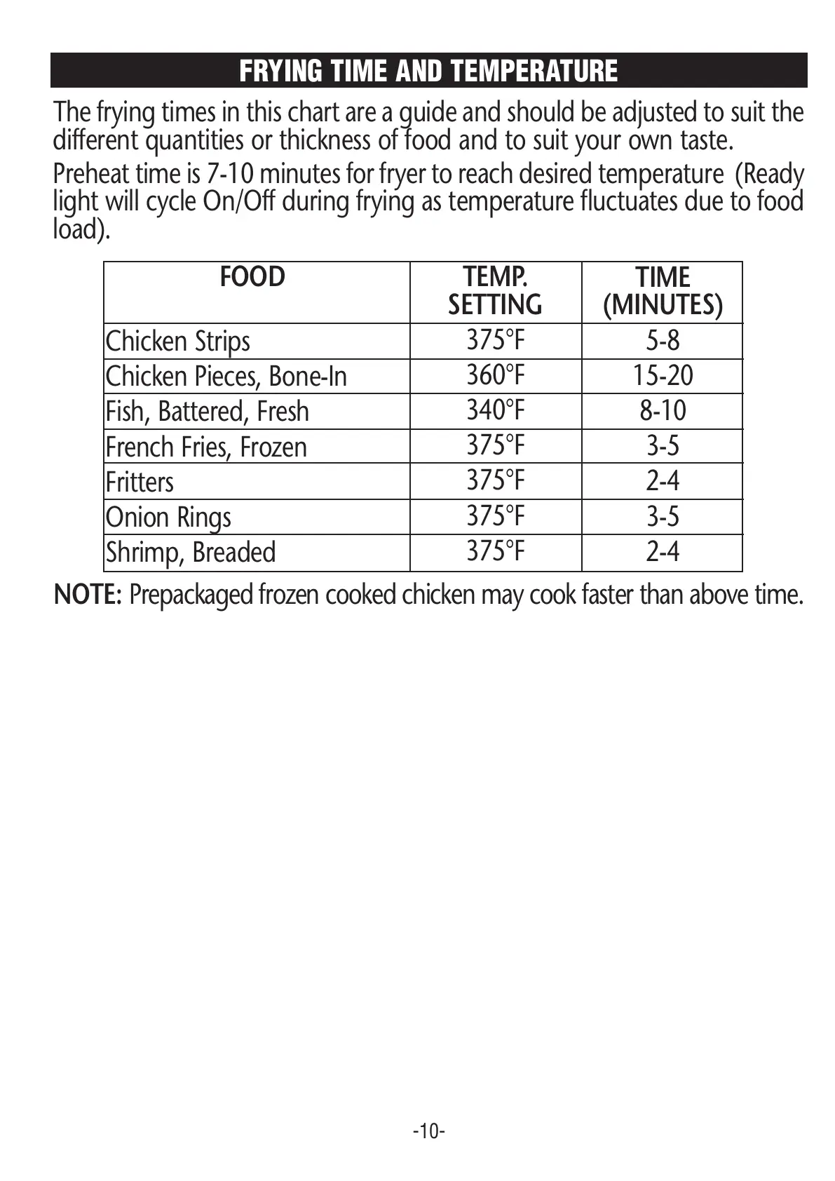 FRYING TIME AND TEMPERATURE