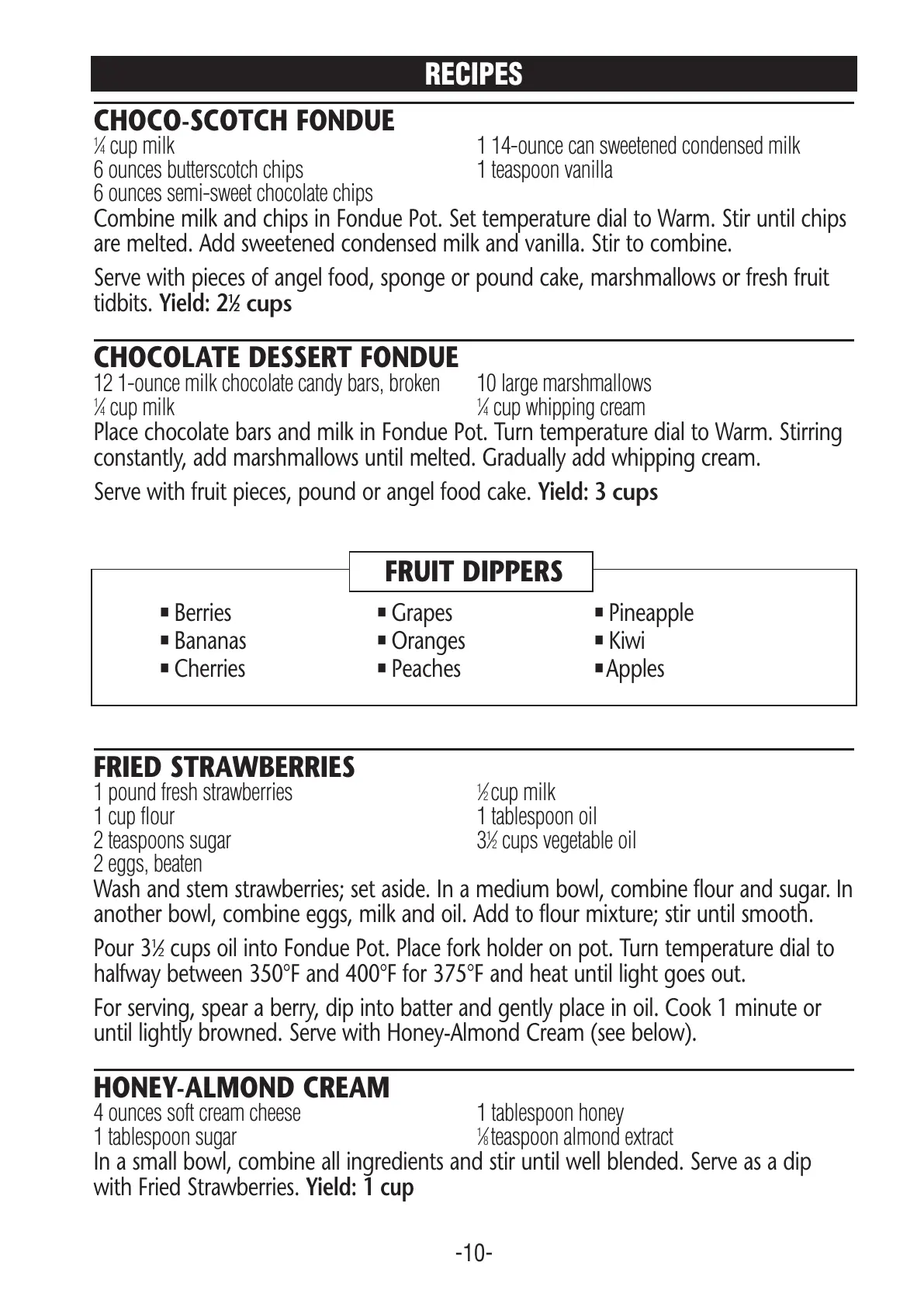 Combine milk and chips in Fondue Pot. Set temperature dial to Warm. Stir until chips