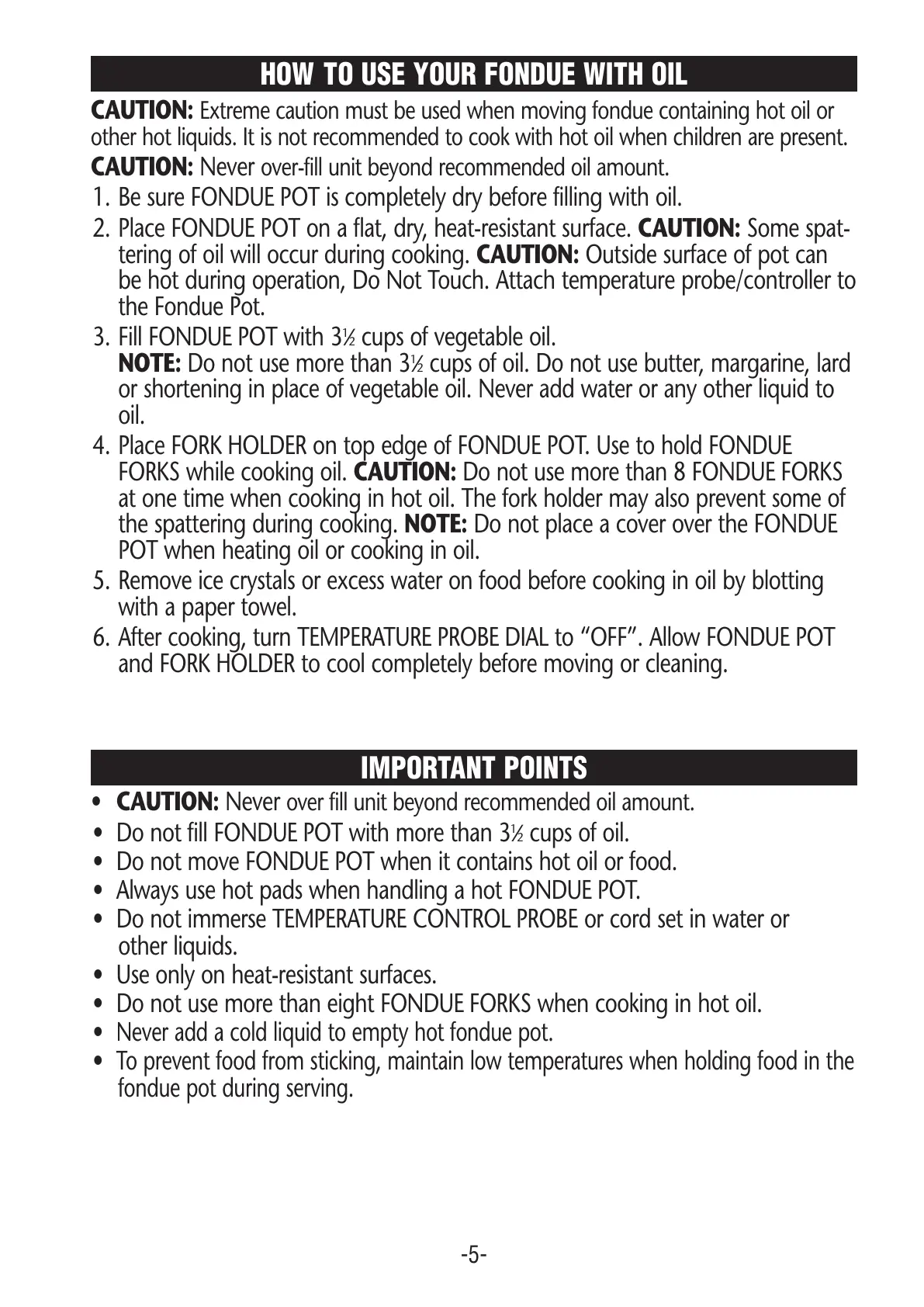 FORKS while cooking oil. CAUTION: Do not use more than 8 FONDUE FORKS