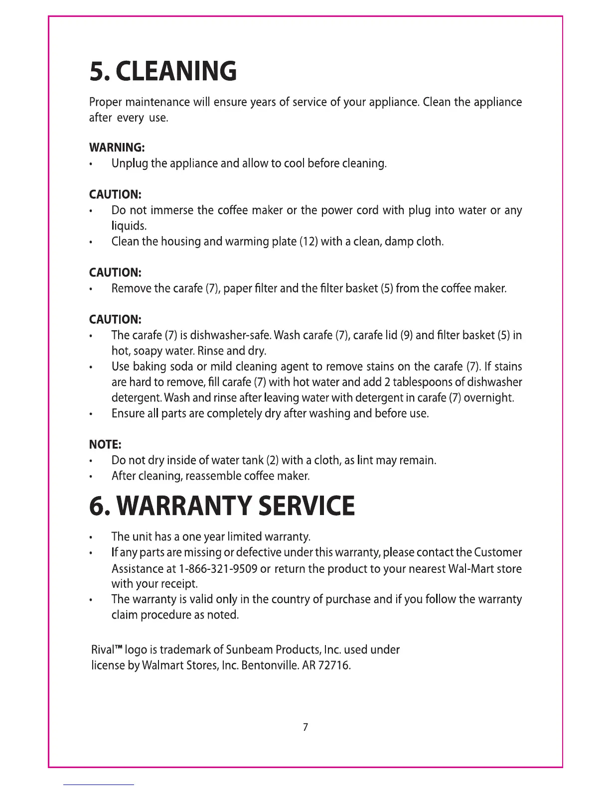 Rival RV-076 - Cleaning