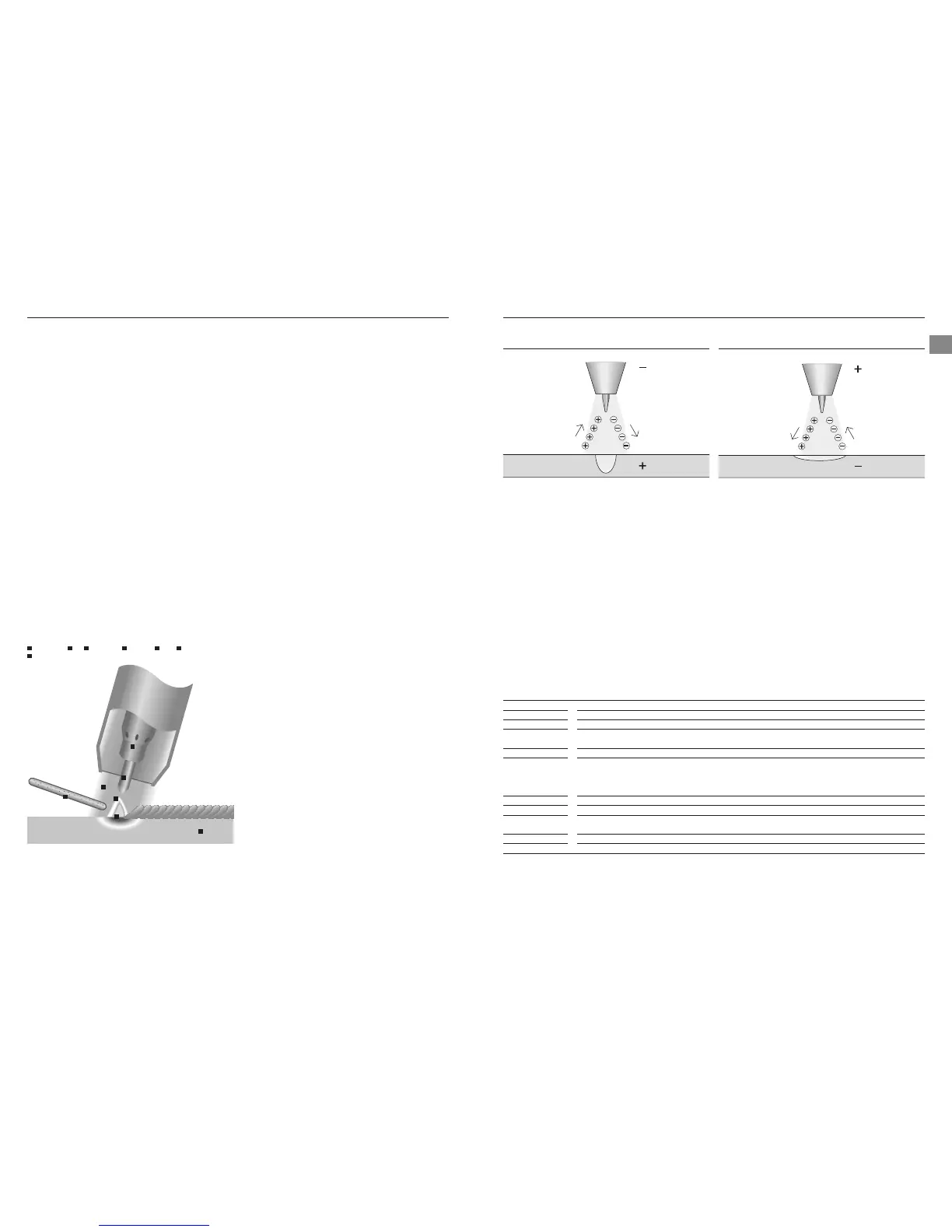 → High heat is produced on the electrode rather than on the base metal