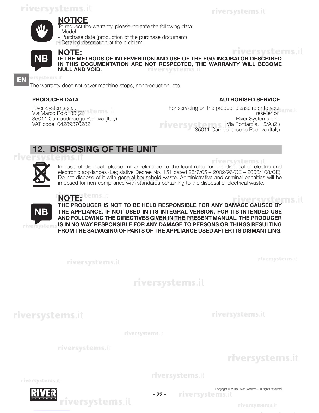 12. DISPOSING OF THE UNIT