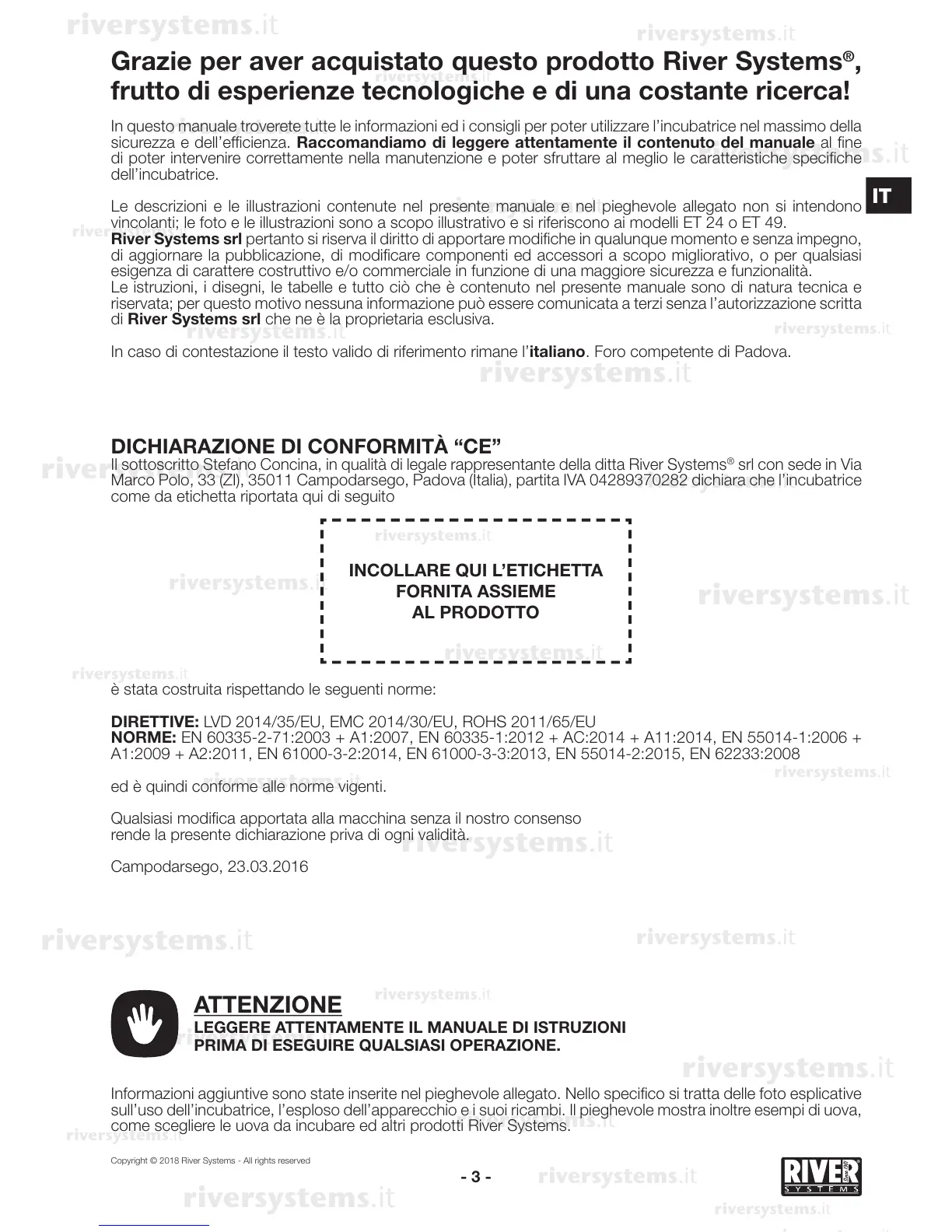 In questo manuale troverete tutte le informazioni ed i consigli per poter utilizzare l’incubatrice nel massimo della