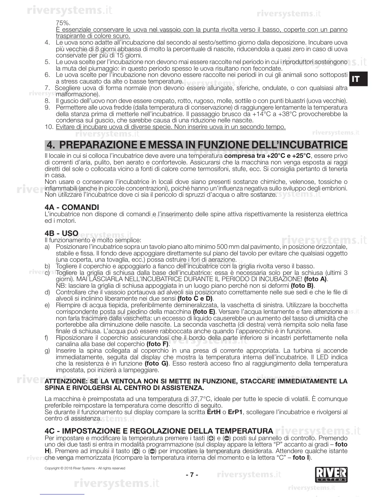4. PREPARAZIONE E MESSA IN FUNZIONE DELL’INCUBATRICE