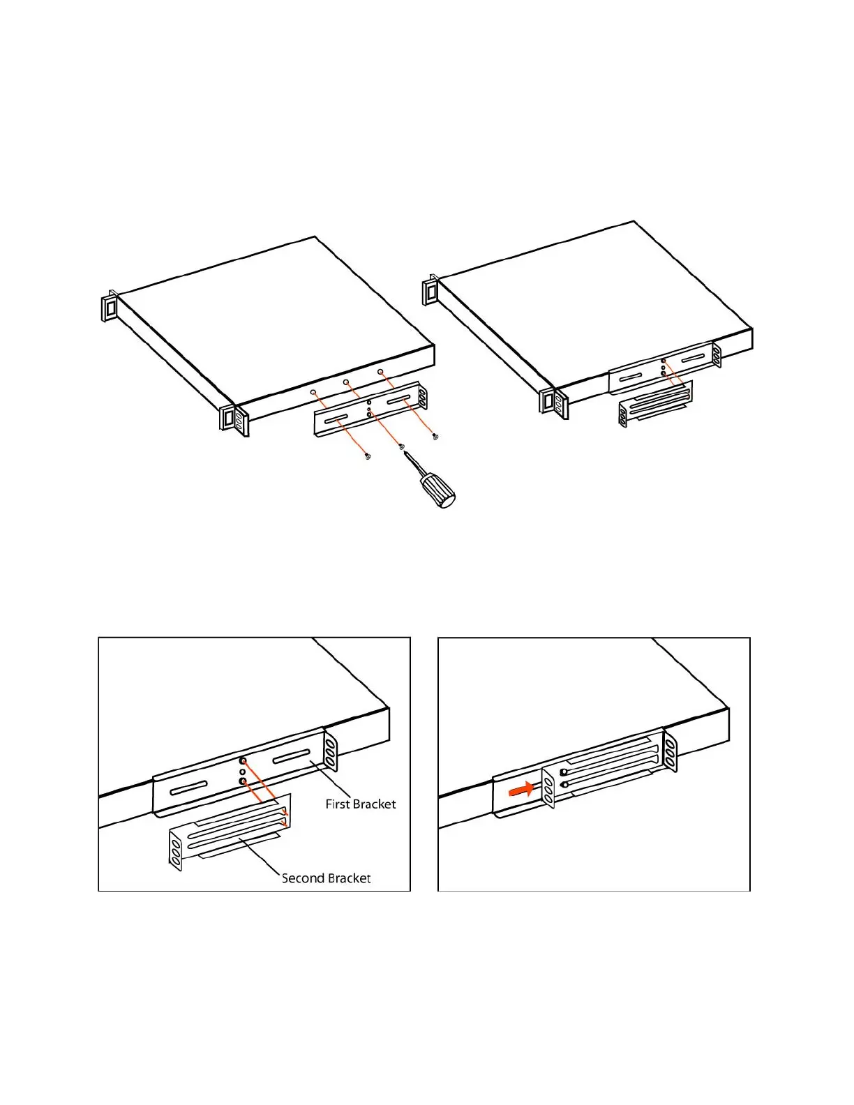 1. Attach the first bracket to the chassis with the three included screws. Select a position that centers