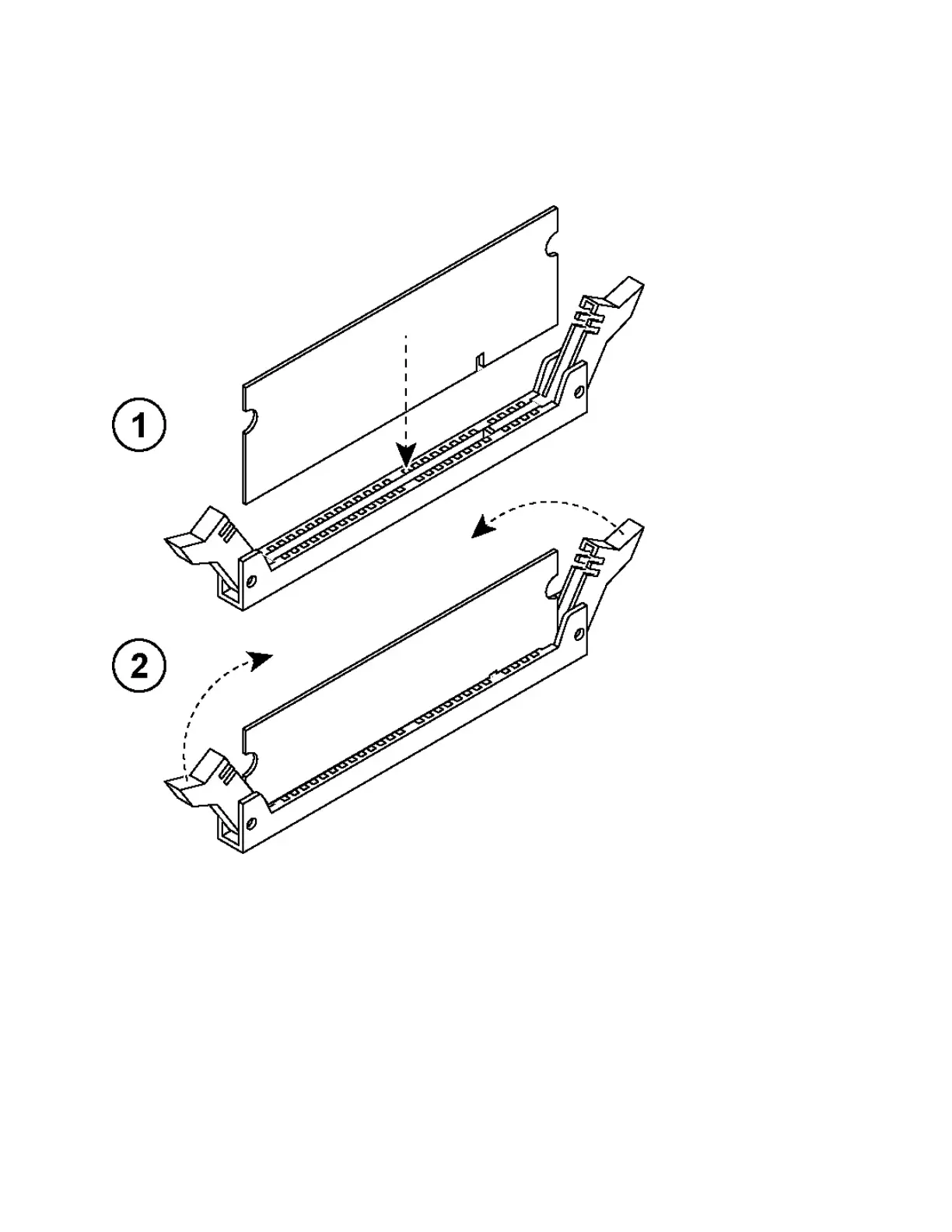 Figure 4-18. Inserting the memory modules into the connector slot and securing