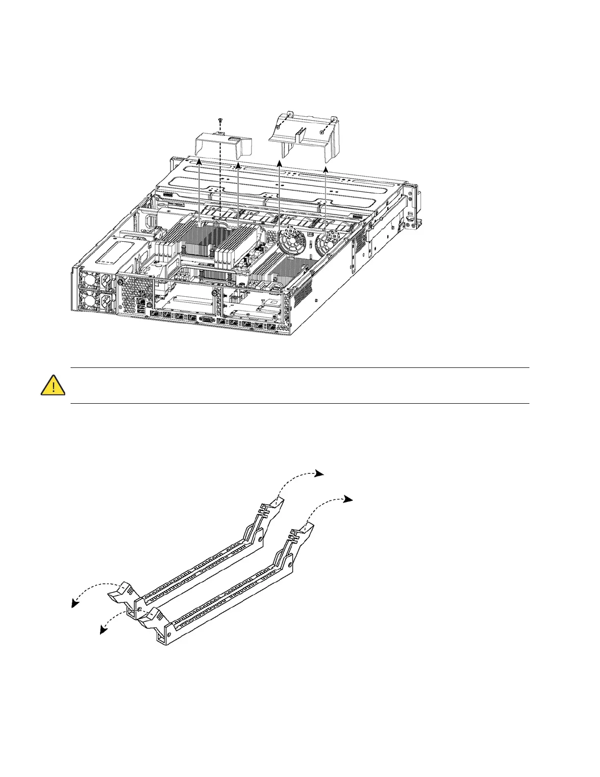 5. Remove the screws securing the cooling shroud to access the memory module slots. (See