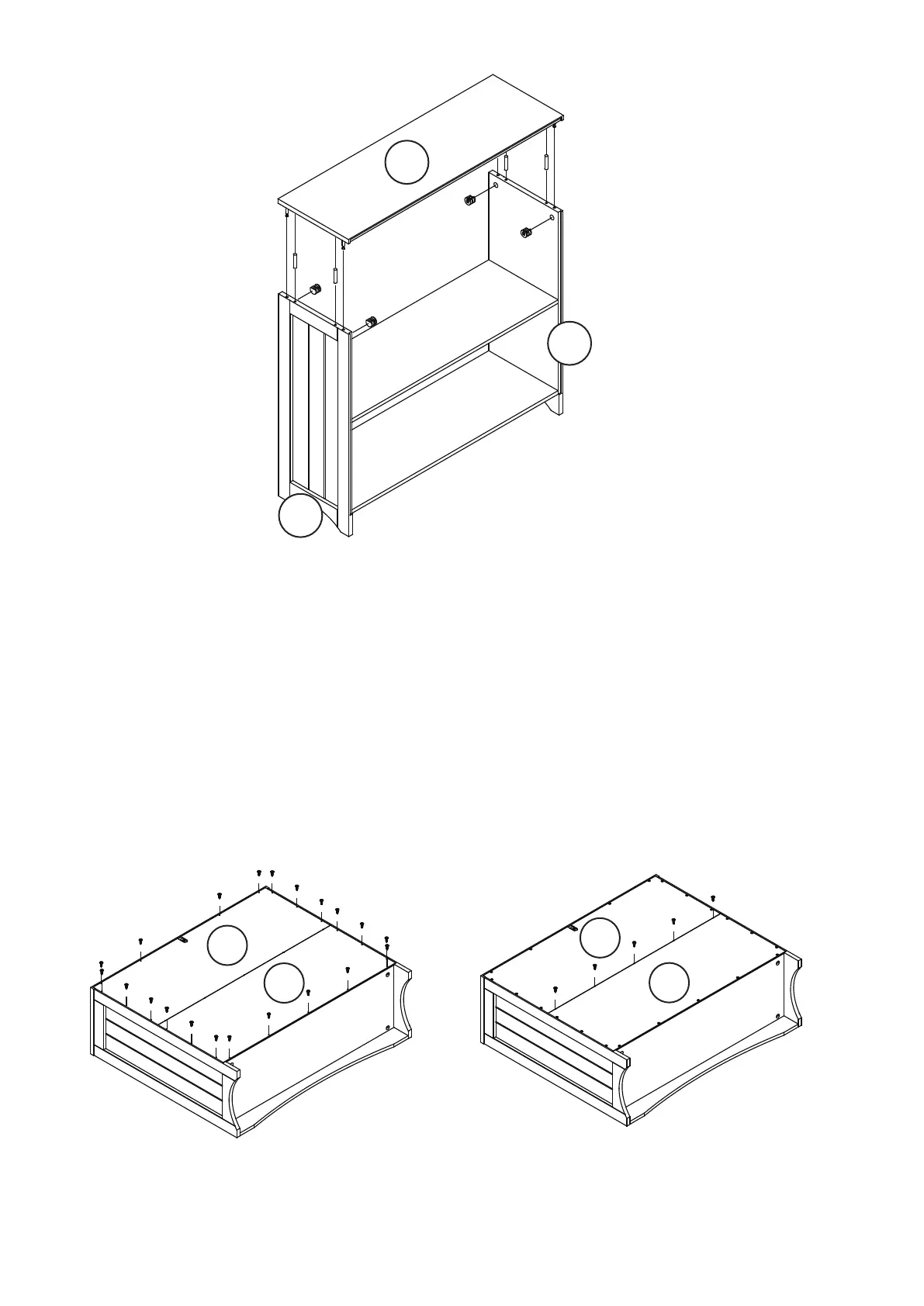 2. Attach top board (1) to bookcase by inserting cam bolts (B) into cam lock holes on both side