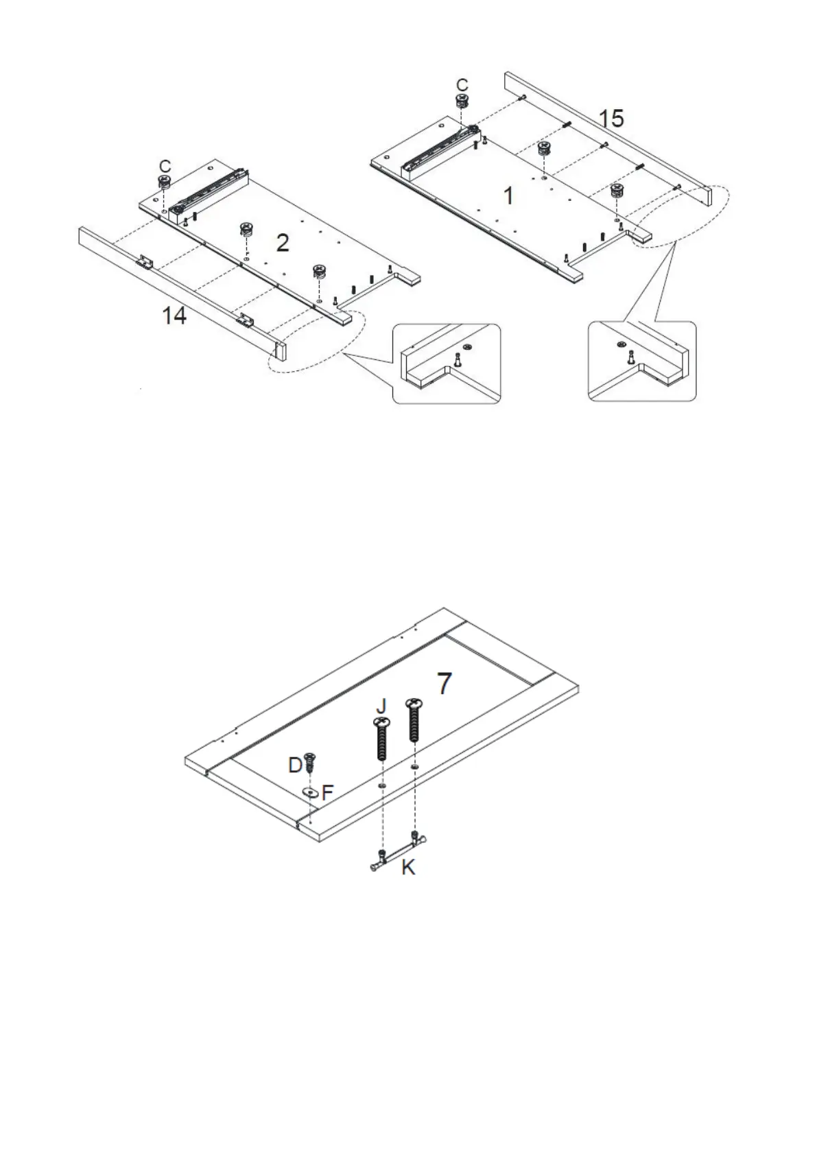 3. Repeat above steps to assemble right side panel (1) and right support board (15).