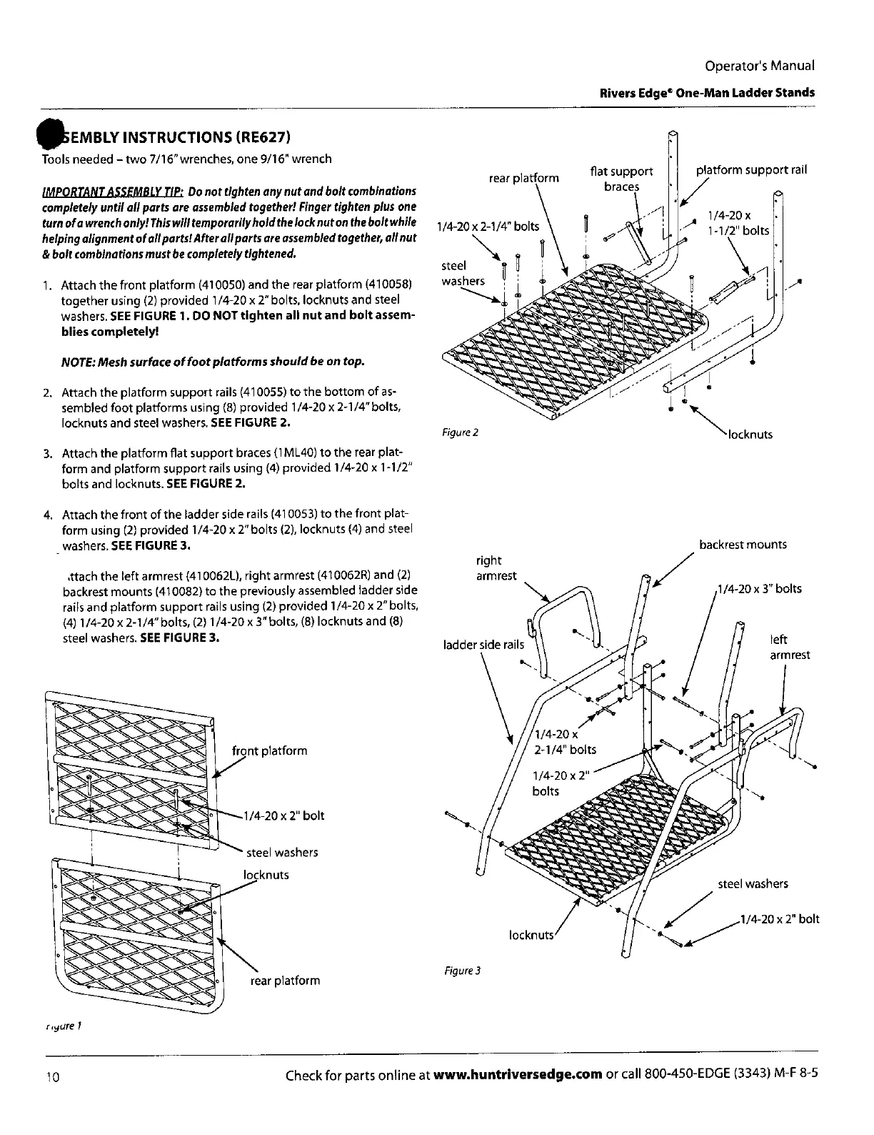 sembled foot platforms using (8) provided 1/4-20 x 2-1/4" bolts,