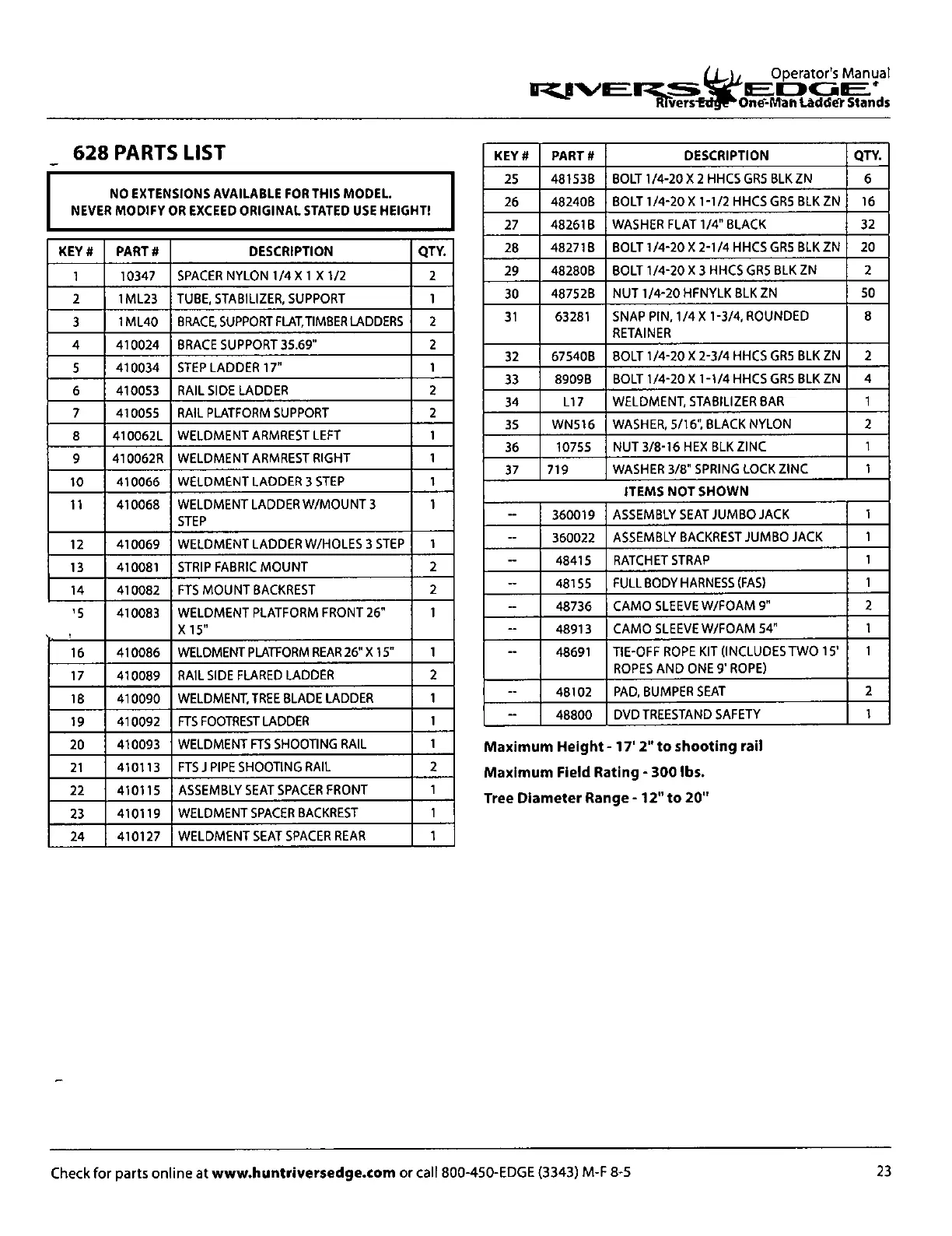 NEVER MODIFY OR EXCEED ORIGINAL STATED USE HEIGHT!